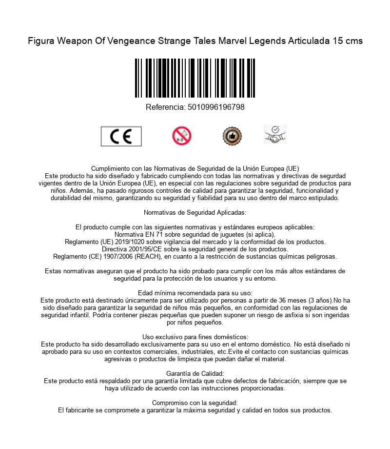 Enciende la acción sobrenatural con la figura de Weapons of Vengeance, una versión brutalmente ardiente de un héroe envuelto en llamas, parte de la impactante línea Strange Tales de Marvel Legends. Con 15 cms de altura y detalles ardientes en cada centímetro, esta figura combina el estilo icónico de un guerrero feroz con el poder infernal que desata en combate. Weapons of Vengeance incluye dos manos intercambiables con garras de fuego, esculpidas con un detalle impresionante para capturar su energía abrasadora. Estas adiciones permiten recrear poses dinámicas y feroces, perfectas para cualquier enfrentamiento infernal en tu colección. Diseñada con múltiples puntos de articulación y un acabado que resalta cada elemento flamígero de su diseño, esta figura es un imprescindible para los fanáticos de la acción intensa y el lado oscuro del universo Marvel. ¡Prepárate para desatar el poder de las llamas en tu vitrina con Weapons of Vengeance!