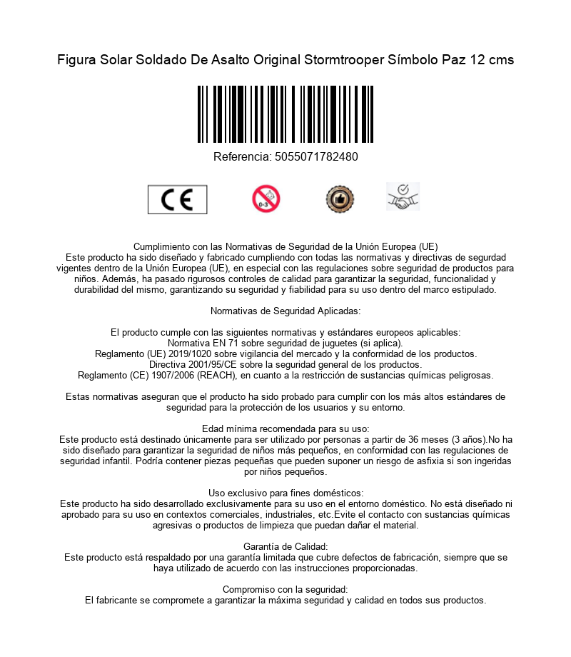 Figura Solar Soldado De Asalto Original Stormtrooper Símbolo Paz 12 cms