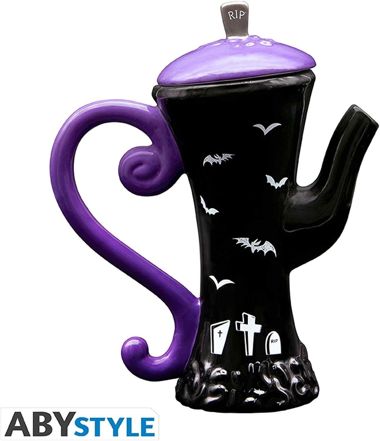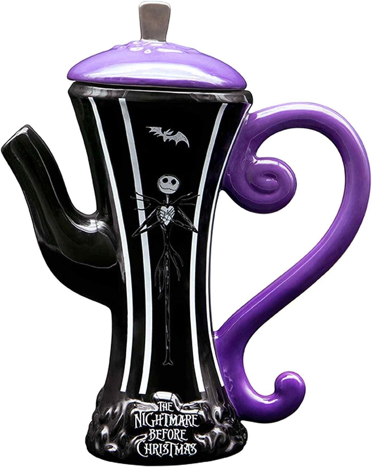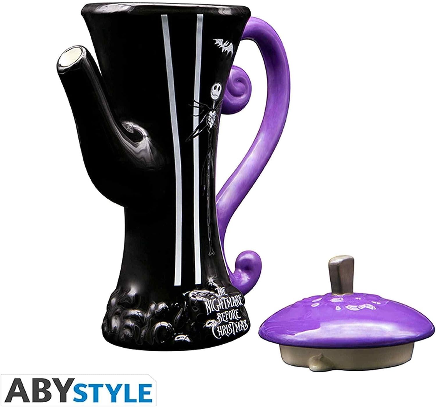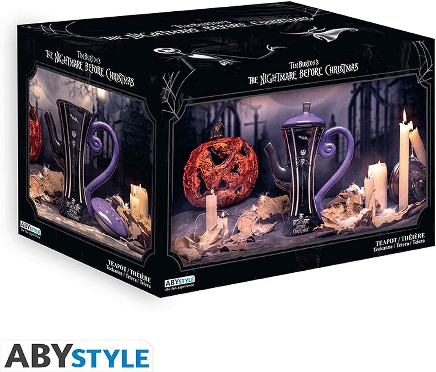 ¿Te gustan las creaciones que salen de las góticas mentes de Tim Burton y Henry Sellick? ¿Te gusta el té? Si tu respuesta a ambas preguntas es afirmativa, ¡enhorabuena! Abystyle ha creado una espectacular tetera basada en la película de stop-motion producida por el estudio Disney “Pesadilla Antes de Navidad” (“Nightmare Before Christmas”). Esta tetera es de cerámica y tiene una capacidad de unos 550 mls. No es apta para lavavajillas ni microondas. Su diseño es ligeramente asimétrico, rindiendo homenaje a la línea de diseño que tiene la propia película. Así, la tetera parece que ha salido de ella. Tiene tapa y viene en una caja temática decorada con motivos de la película.