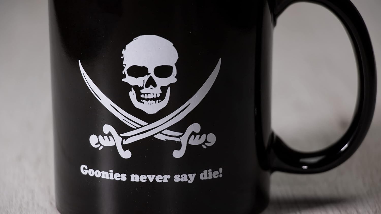 Revive el espíritu aventurero de los años ochenta con esta taza inspirada en la mítica película de piratas producida por Steven Spielberg y dirigida por Richard Donner. Un homenaje directo a una historia de amistad, mapas secretos y tesoros ocultos que marcó a toda una generación y que sigue despertando nostalgia y ganas de aventura. La taza presenta en su superficie una de las frases más emblemáticas de la película, acompañada del inconfundible símbolo pirata, creando un diseño reconocible al instante para cualquier fan. Cada sorbo se convierte en un pequeño viaje a aquellas cuevas, galeones y desafíos imposibles que hicieron legendaria esta historia cinematográfica. Además de su potente carga emocional, se trata de una taza práctica y pensada para el día a día. Es apta para lavavajillas y microondas, por lo que puedes usarla sin preocupaciones tanto en casa como en la oficina, manteniendo intacto su diseño lavado tras lavado. Perfecta para cafés mañaneros, tardes de té o maratones de cine clásico, esta taza es un objeto imprescindible para amantes del cine de aventuras y del mejor cine de los años ochenta. Una pieza ideal para regalar o para darte un capricho y recordar que, pase lo que pase, la aventura nunca se rinde.