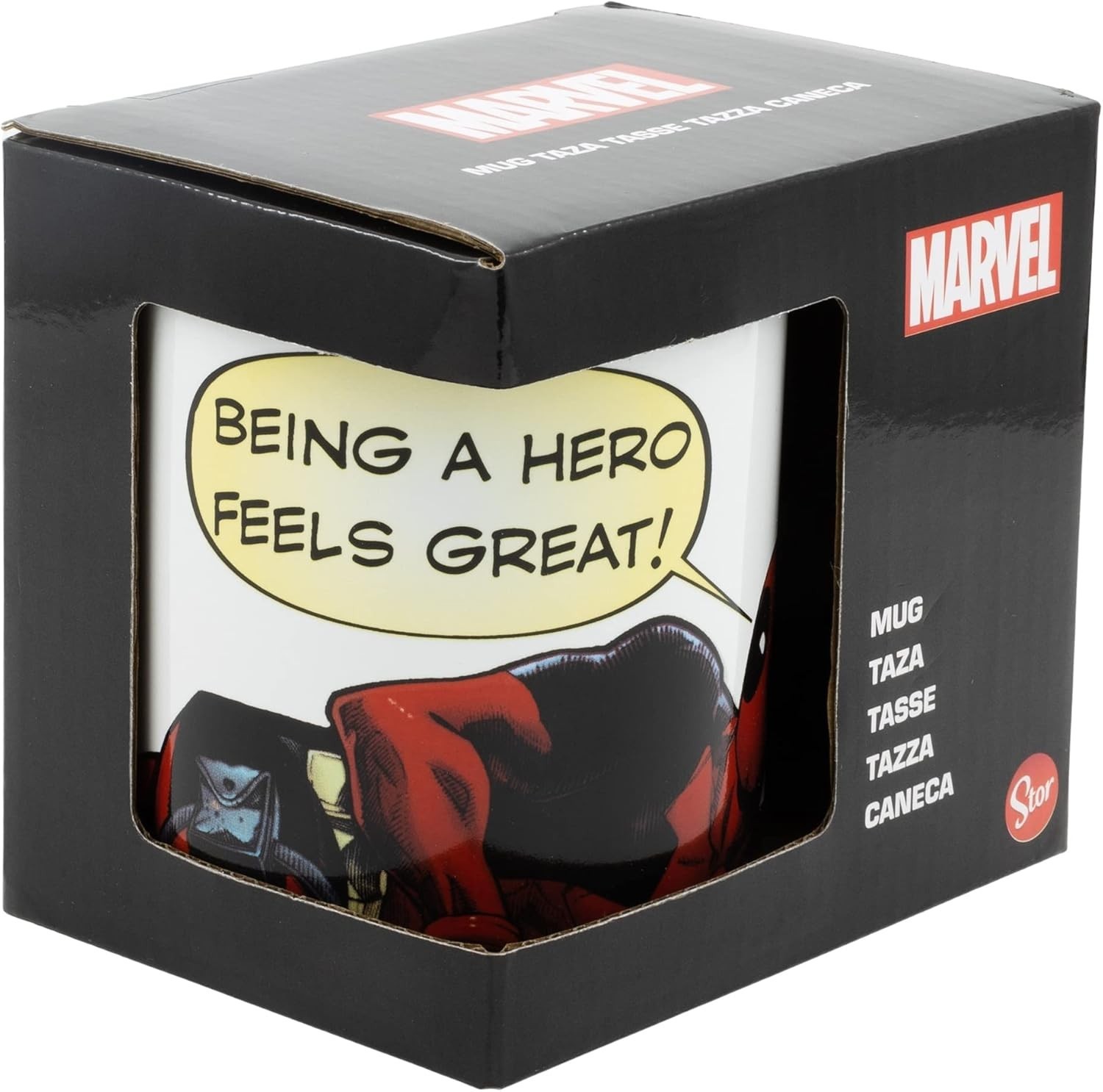Para salvar el universo Marvel hay que estar bien hidratado. El mercenario bocazas, Deadpool, descansa en esta taza y dice que se siente genial, pero mejor se sentirá cuando te hagas con él y te ayude a prepararte cada día con un buen desayuno. Esta taza de 325 mls de capacidad está hecha de cerámica y es una creación de Stor, maestros indiscutibles en el noble arte de la “tazomaquia”. Sí, me he inventado esa palabra, ¿pero cómo quieres que llame a los artistas de Stor que hacen tazas? Pues eso, tazomaquieros. En fin, que tiene licencia oficial Marvel y que cada día que desayunes con ella estarás un pasito más cerca de ser como Deadpool, o Masacre, como le llamábamos aquí antes de que por algún motivo los nombres en español dejaran de molar aparentemente. Bueno, creo que con esta descripción tienes más que suficiente para saber si quieres hacerte con ella, ¿no? Al fin y al cabo, no es más que una taza. Ah sí, y también tienes las fotos para ver cómo es, échales un buen vistazo, que ya sí que son las buenas, las fotos que había antes de la fiesta mejicana que monté con mariachis y chimichangas ya están eliminadas, pido perdón a quien las viera y se llevara un susto. Bueno, eso, que ya os dejo, que creo que me están llamando al timbre de la Mansión Sí, la Mansión X ahora es mía, y no, no le voy a cambiar el nombre, se va a seguir llamando Mansión X, pero no por Xavier, sino por… JAJAJA nah, que va, os quedaréis con la duda. Por cierto, se me olvidaba, esta taza es apta para lavavajillas y microondas, así que no tenéis excusa para que no esté siempre limpia y calentita. Hasta luego, pimpollos. Posdata: No, no soy una IA, al que lo haya pensado le voy a hacer una visitilla esta noche con mi sombrero de cowboy y mi lazo para arrastrar su culamen por el descampado más cercano.