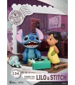 “Lilo & Stitch”, una de las películas más queridas de Disney, llega a tu colección figuras con este diorama que muestra a la improbable pareja de amigos disfrutando de un rato de música y juegos en la habitación de Lilo, igual que en una de las escenas de la película. Este diorama de Beast Kingdom y su línea D-Stage, celebra el 100 aniversario del legendario estudio de cine. Viene en una caja plateada con ventana de exposición. En la parte de atrás del diorama hay una postal que muestra una imagen de la habitación de Lilo para que la escena que recrea sea aún más fiel a la que viste en el cine. Está hecho de PVC de gran calidad y ha sido moldeado con una atención al detalle increíble.