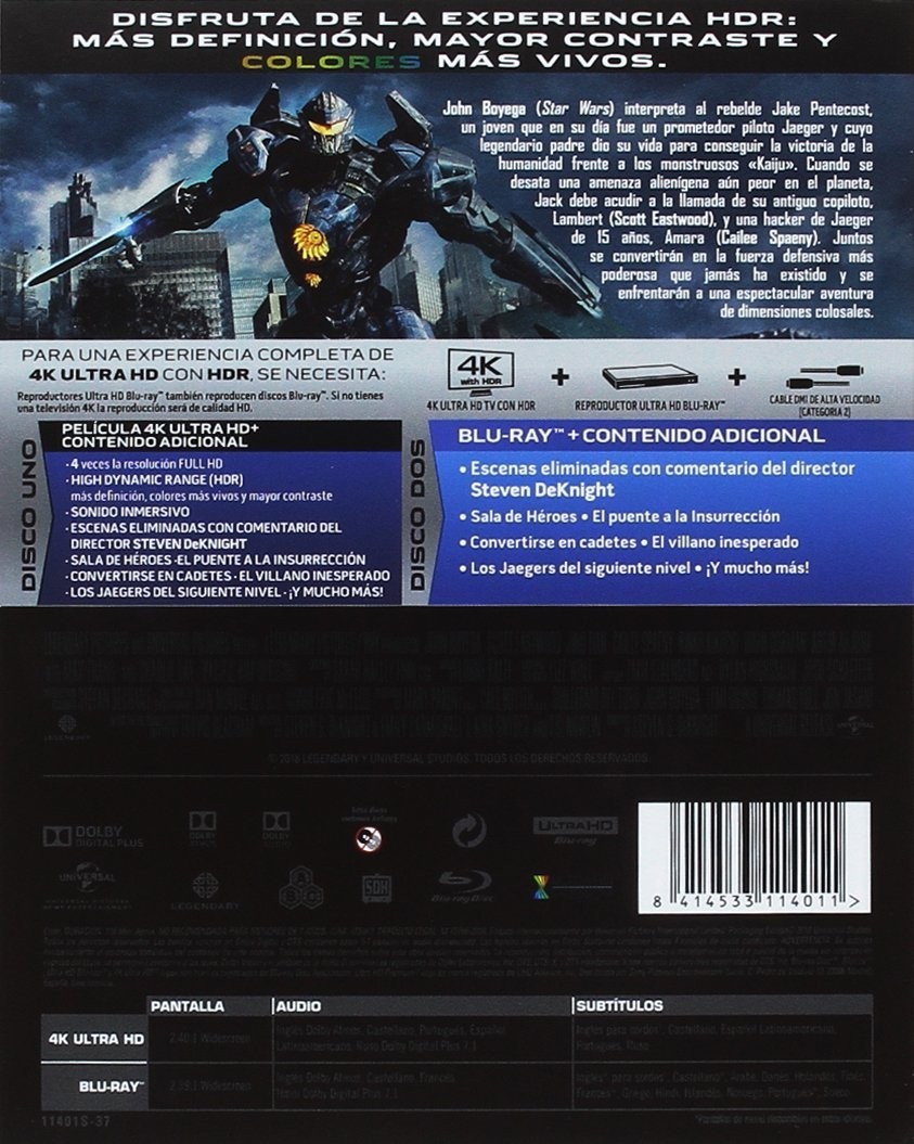 Un futuro cercano. Han pasado 10 años tras la primera invasión que sufrió la humanidad, pero la lucha aún no ha terminado. El planeta vuelve a ser asediado por los Kaiju, una raza de alienígenas colosales, que emergen desde un portal interdimensional con el objetivo de destruir a la raza humana. Ante esta nueva amenaza, los Jaegers, robots gigantes de guerra pilotados por dos personas para sobrellevar la inmensa carga neuronal que conlleva manipularlos, ya no están a la altura de lo que se les viene encima. Será entonces cuando los supervivientes de la primera invasión, además de nuevos personajes como el hijo de Pentecost (John Boyega), tendrán que idear la manera de sorprender al enorme enemigo, apostando por nuevas estrategias defensivas y de ataque. Con la Tierra en ruinas e intentando reconstruirse, esta nueva batalla puede ser decisiva para el futuro... Secuela de 'Pacific Rim' (2013).