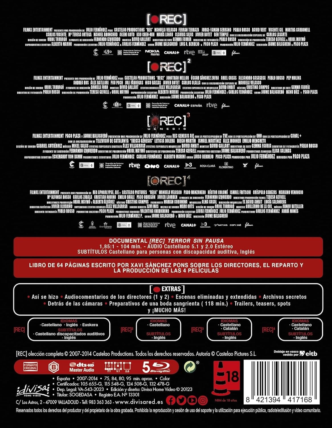 • [•REC] Terror Without Pause (Documentary) Image: 1.85:1 - 104 min. – Audio: Spanish 5.1 and 2.0 Stereo / Subtitles: Spanish for people with hearing disabilities, English.