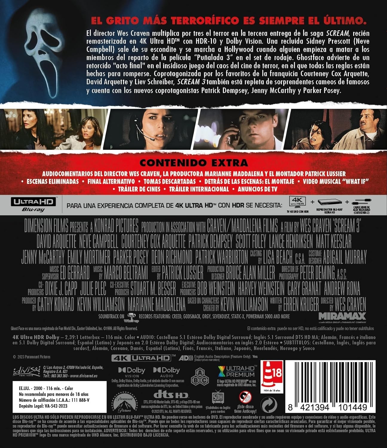 ![Scream 3 (4K UHD) [Blu-ray]](https://frikiverso.es/632494-large_default/scream-3-4k-uhd-blu-ray-.jpg)