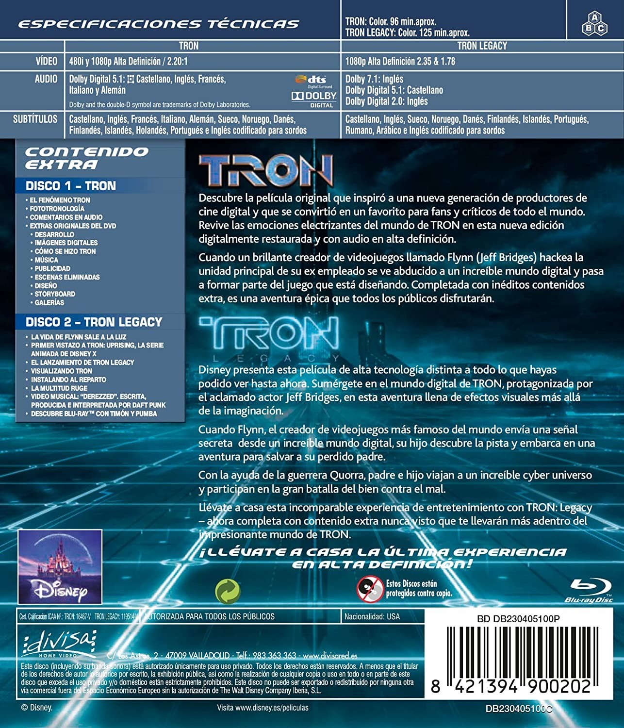 ![Tron (Blu-ray) Pack 2 peliculas: Tron / Tron: Legacy [Blu-ray]](https://frikiverso.es/605934-large_default/tron-blu-ray-pack-2-peliculas-tron-tron-legacy-blu-ray-.jpg)