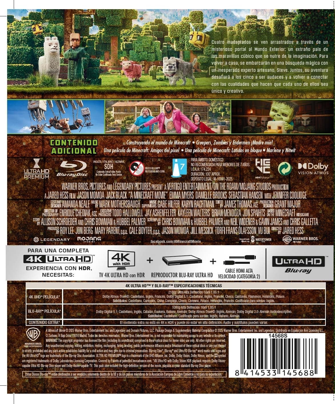 Bienvenido al mundo de Minecraft, donde la creatividad no sólo ayuda a crear, sino que es esencial para la supervivencia. Cuatro inadaptados -Garrett "El Basurero" Garrison (Momoa), Henry (Hansen), Natalie (Myers) y Dawn (Brooks)- se encuentran luchando con problemas ordinarios cuando de repente se ven arrastrados a través de un misterioso portal al Mundo Exterior: un extraño país de las maravillas cúbico que se nutre de la imaginación. Para volver a casa, tendrán que dominar este mundo (y protegerlo de cosas malvadas como Piglins y Zombies, también) mientras se embarcan en una búsqueda mágica con un inesperado experto artesano, Steve (Black). Juntos, su aventura desafiará a los cinco a ser audaces y a volver a conectar con las cualidades que hacen que cada uno de ellos sea único y creativo... las mismas habilidades que necesitan para prosperar en el mundo real.