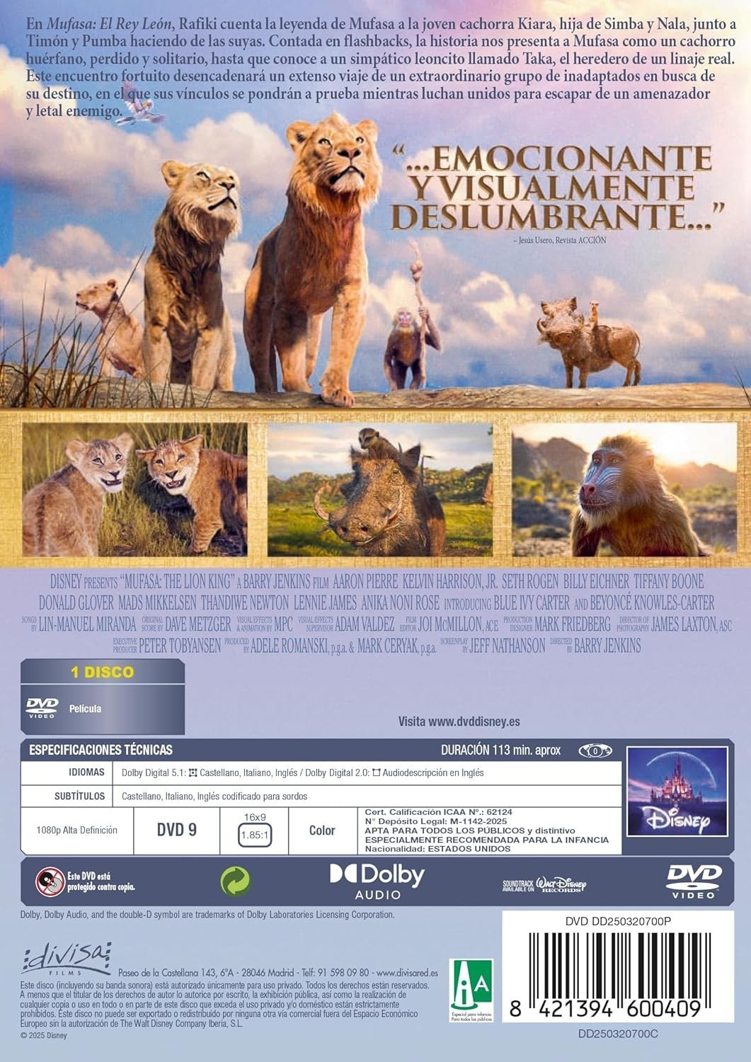 Mufasa: El Rey León [DVD] (2024) Mufasa: The Lion King