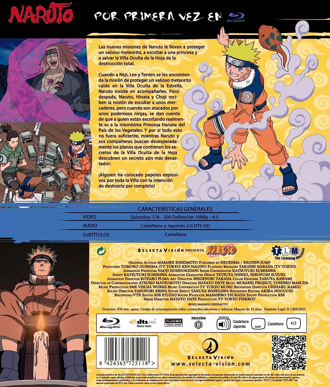 Naruto 's new missions lead him to protect a valuable meteorite, escort a princess, and save the Hidden Leaf Village from total destruction. When Neji, Lee and Tenten are tasked with the mission of protecting a valuable fallen meteorite in the Hidden Star Village, Naruto insists on accompanying them. Shortly after, Naruto , Hinata and Choji receive the mission to escort some merchants, but when they are attacked by some powerful ninjas, they realize that who they are really escorting is Princess Haruna herself from the Land of Vegetables. And, if all this were not enough, while Naruto and his companions desperately search for the plans that contain the secrets of the Hidden Leaf Village, they discover an even more devastating secret: Someone has placed explosive papers throughout the Village with the intention of to destroy it completely!