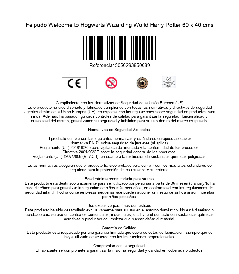 Da la bienvenida a tu hogar como si fuera el mismísimo castillo de Hogwarts con el Felpudo Welcome to Hogwarts Wizarding World Harry Potter de 60 x 40 cm. Este accesorio es perfecto para fans del mundo mágico que quieren añadir un toque encantado y lleno de personalidad a la entrada de su casa. Su diseño destaca por incluir el emblemático escudo de Hogwarts, símbolo de una de las escuelas de magia más famosas de todos los tiempos. Con un estilo elegante y reconocible al instante, convierte cualquier puerta en la entrada a un mundo de hechizos, aventuras y misterio. Con unas medidas de 60 x 40 cm, ofrece el tamaño ideal para cumplir su función práctica, ayudando a mantener la suciedad fuera del hogar sin renunciar al estilo. Es perfecto tanto para interiores como exteriores, adaptándose a diferentes espacios. Ideal como regalo o para completar tu colección de Harry Potter, este felpudo es la opción perfecta para quienes siempre han esperado su carta de admisión. Porque al cruzar tu puerta… comienza la magia.