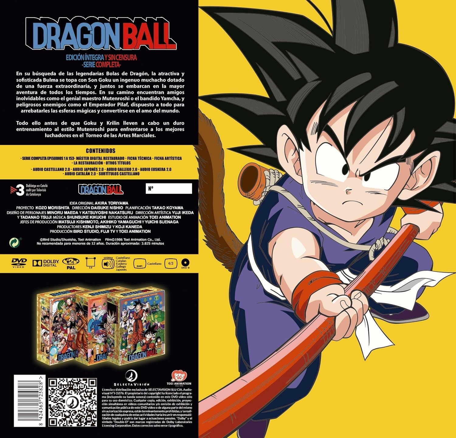 Serie de TV (1986-1989). 5 temporadas. 153 episodios. Dragon Ball narra la historia de Goku, un excepcional niño que llegó a la Tierra en una cápsula durante una noche tormentosa. Sin saber nada de su pasado, un anciano lo cuidó como su nieto hasta los ocho años. Después de morir su abuelo, Goku accede a la Kame House, lugar donde un estrambótico anciano le convertirá en un campeón de artes marciales. Conocerá por el camino a Bulma, una muchacha obsesionada con algo denominado las Bolas de Dragón, y Krilin, su compañero de aventuras, entre otros...
