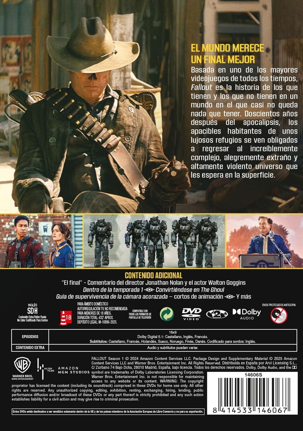 Serie de TV (2024-). 1 temporada. 8 episodios. Basado en una de las sagas de videojuegos más importantes de todos los tiempos, es la historia de los que tienen y de los que no tienen en un mundo en el que prácticamente no queda nada que tener. 200 años después del apocalipsis, los apacibles habitantes de los refugios de lujo se ven obligados a regresar al infierno irradiado que dejaron sus antepasados y se sorprenden al descubrir que les espera un universo increíblemente complejo, alegremente extraño y muy violento.
