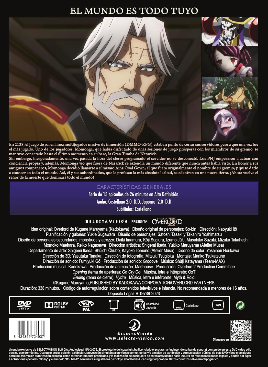 In 2138, the immersive massively multiplayer online role-playing game (DMMO-RPG) was about to shut down its servers despite once being the most played game. One of the players, Momonga, who had enjoyed some prosperous gaming sessions with his guild members, stayed connected until the last moment at his base, the Great Tomb of Nazarick. However, unexpectedly, once the scheduled shutdown time passed, the server did not disconnect. The NPCs began to act with their own consciousness, and Momonga also saw that outside Nazarick lay a different world that he had never seen before. In honor of his former companions, Momonga decided to call himself Ainz Ooal Gown, which was originally the name of his guild, and wanted to make it known throughout the world. Thus, he and his subordinates, who profess the most absolute loyalty to him, enter a new land. Now the lord of death returns and will dominate the entire world!