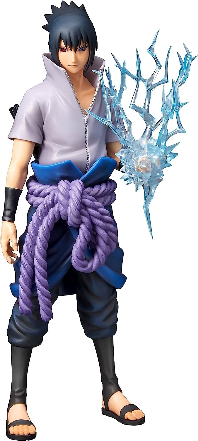 El Clan Uchiha tiene entre sus filas a Sasuke, que se presenta al comienzo de su aparición en “Naruto” como un estudiante de la Academia Ninja de Konoha. Compañero de Naruto, Sasuke descubrirá que su hermano es el responsable del trágico destino que sufrió su clan. Esto iniciará un camino de venganza en el que se embarcará contra su propia sangre. Con los altibajos morales que sufre Sasuke, la serie de Naruto demostró que tenía una carga emotiva y filosófica mucho más elevada de lo que muchos se pensaron. Bandai y Banpresto nos traen la figura de Sasuke hecha de PVC y con una altura de 28 cms. Pertenece a la línea Grandista Nero y viene en una caja temática con imágenes de la figura. Sasuke está con el puño izquierdo levantado hacia la cintura, invocando un efecto de poder azul translúcido.