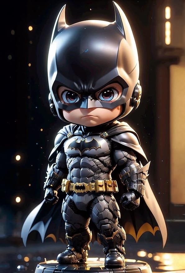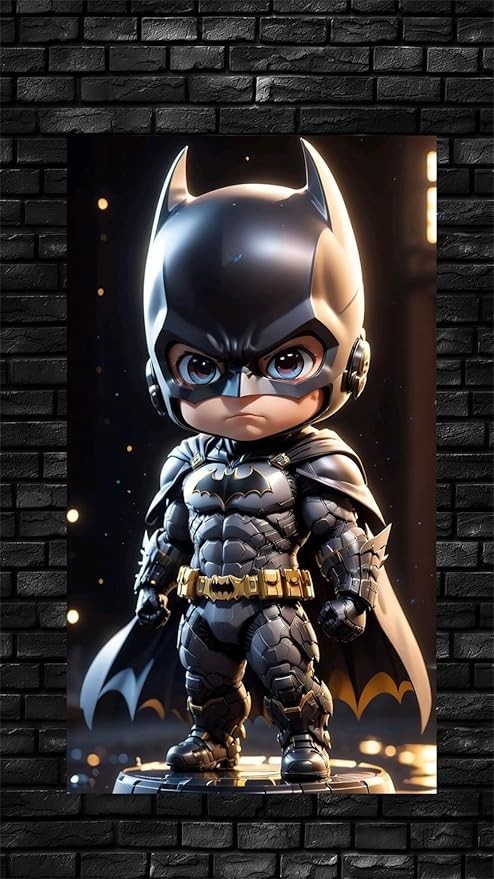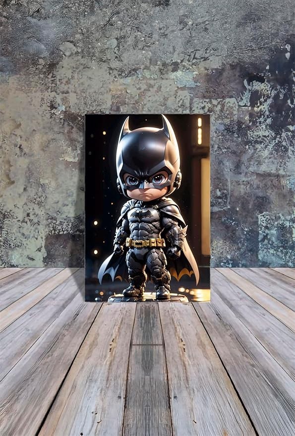 Un toque de ternura y heroísmo para tu espacio. Esta ilustración muestra al pequeño Caballero Oscuro en su versión más adorable, con su clásico traje, capa y máscara, listo para defender la justicia con valentía infantil. Impreso en alta calidad sobre lámina de aluminio resistente y brillante, ideal para decoración de habitaciones, colecciones geek o regalos originales. ¡Un must para fans de Batman de todas las edades!