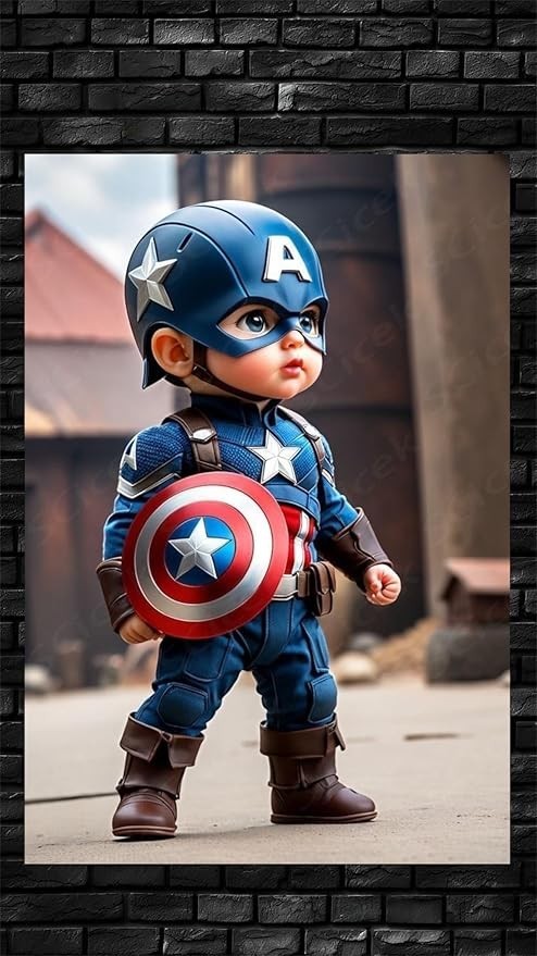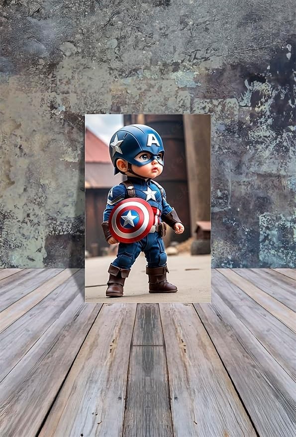 El pequeño defensor del bien llega en una versión encantadora. Con su escudo estrella y su traje clásico en miniatura, este valiente héroe infantil representa la fuerza, el coraje y la ternura en una sola imagen. Impreso en alta resolución sobre lámina de aluminio brillante y duradera, es perfecto para decorar espacios infantiles, colecciones de superhéroes o como regalo único para fans de Marvel.