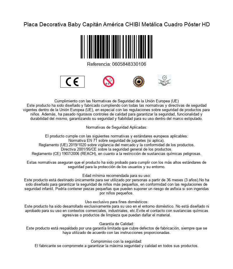 Placa Decorativa Baby Capitán América CHIBI Marvel Metálica Cuadro Póster HD