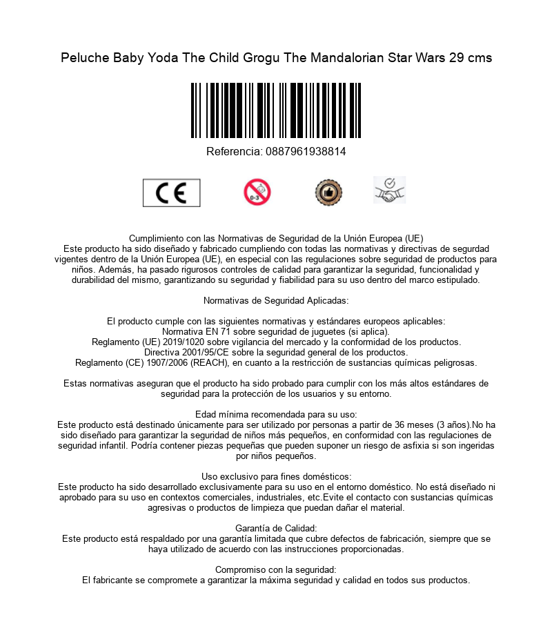 Peluche Baby Yoda The Child Grogu The Mandalorian Star Wars 29 cms