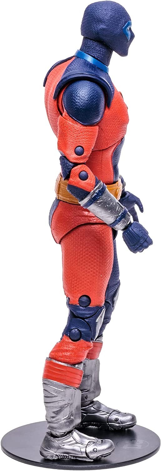 El superhéroe de DC Atom Smasher por fin tuvo su versión en acción real en la película de 2022 “Black Adam” protagonizada por Dwayne Johnson y producida por Warner Bros. Este poderoso personaje que puede manejar su tamaño a antojo estaba interpretado por Noah Centineo, y ahora llega a tu casa en forma de figura articulada de 18 cms. Es una figura de la línea DC Multiverse de McFarlane Toys que viene acompañada por una tarjeta coleccionable del personaje y que incluye dos manos intercambiables y una peana de exposición. Está hecho de un PVC de gran calidad que ha sido cuidado hasta el más mínimo detalle, observa su uniforme rojo y azul y maravíllate con cada uno de sus pliegues y recovecos.