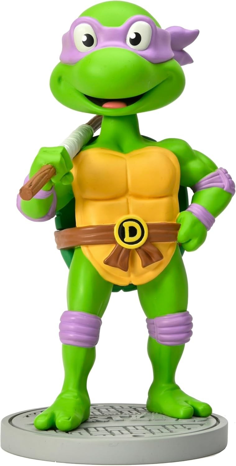 Donatello, el ninja de bastón Bo por arma y antifaz morado, llega a tu colección de figuras con la divertidísima versión Head Knocker del personaje. Esta línea de figuras está creada por la legendaria marca Neca, que lleva años trayéndonos a los personajes más icónicos del mundo del cine y la televisión. Viene sobre una peana de exposición y está hecha de resina con calidad coleccionista. Mide unos 16,5 cms y es un artículo de licencia oficial de Nickelodeon y de las TMNT. ¿Listo para proteger la ciudad con Donatello?
