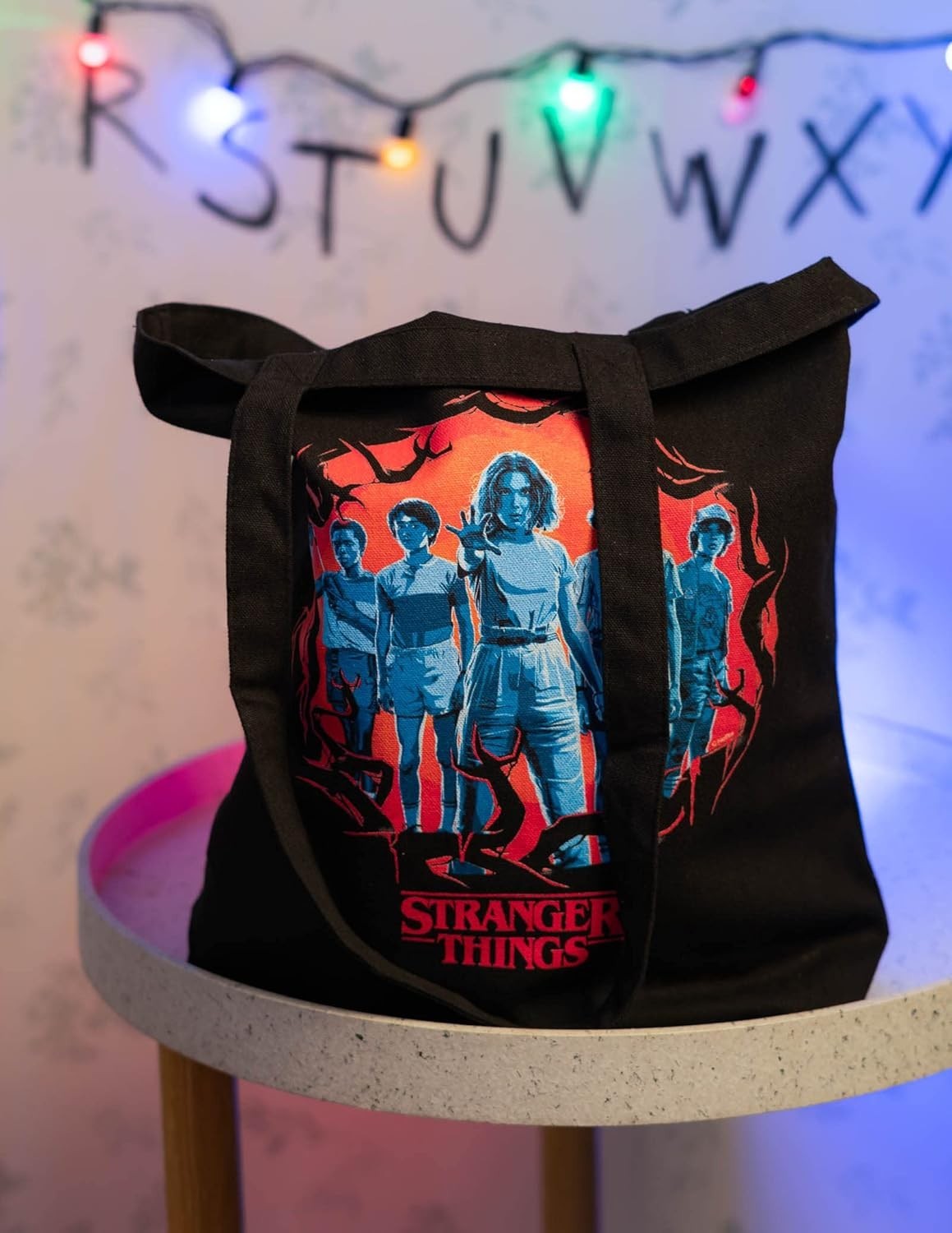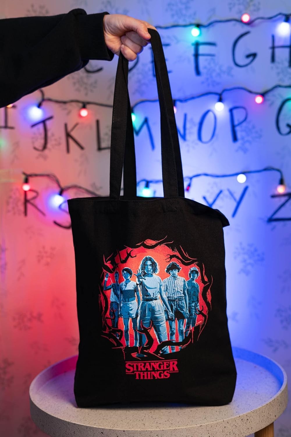Si te gusta llevar contigo un pedacito del espíritu aventurero de Hawkins, esta bolsa es justo lo que necesitas. La Bolsa de Tela Personajes Stranger Things muestra a los protagonistas de la serie reunidos alrededor de Eleven, como si estuvieran listos para enfrentarse a lo desconocido una vez más. Es un diseño que transmite compañerismo, valentía y ese aire ochentero tan característico que nos conquistó desde el primer episodio. Fabricada en tela resistente, es perfecta para el día a día: puedes usarla para ir a clase, al trabajo, a la compra o para llevar tus objetos favoritos a cualquier parte. Su tamaño la hace práctica y cómoda, con asas pensadas para poder colgarla al hombro sin esfuerzo. Además, su estampado no pasa desapercibido. Cada vez que la saques, alguien reconocerá la escena y empezará la conversación: teorías, momentos favoritos, personajes, todas esas historias que unen a los fans. Es ideal para quienes no solo ven la serie, sino que la sienten. Para quienes creen que la amistad puede con todo, que cada misión merece ser vivida, y que lo cotidiano también puede ser épico. Haz que tu día tenga un toque de aventura. Llévate esta bolsa y lleva contigo el espíritu Stranger Things allá donde vayas.