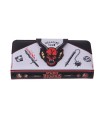 La Cartera Monedero Club Hellfire de Stranger Things es mucho más que un simple accesorio: es una declaración de intenciones para auténticos fans del Upside Down. Inspirada en el mítico club liderado por Eddie Munson, esta cartera captura toda la esencia rebelde, friki y ochentera que convirtió al Hellfire Club en un icono inolvidable de la serie. Compacta, práctica y con un diseño que no pasa desapercibido, es perfecta para llevar tus monedas, billetes o tarjetas con estilo mientras demuestras tu lealtad al club más legendario de Hawkins. Cada detalle está pensado para que, al sacarla del bolsillo o del bolso, se convierta en tema de conversación inmediata entre fans de Stranger Things. No es solo una cartera: es un guiño cómplice a quienes saben reconocer una buena tirada de dados… y una buena aventura sobrenatural. Ideal para el día a día, para regalar o para completar tu colección de merchandising oficial, esta cartera monedero combina funcionalidad y personalidad en un solo objeto. Si te apasionan los años 80, el rol, el rock y las historias que te mantienen en vilo, este accesorio está hecho para ti. Está hecha por la conocidísima marca Nemesis Now, responsable de algunos de los artículos más icónicos de, por ejemplo, los Stormtroopers. Únete al Club Hellfire, lleva Hawkins contigo a todas partes y demuestra que estás preparado para cualquier desafío… incluso los que vienen del Otro Lado.