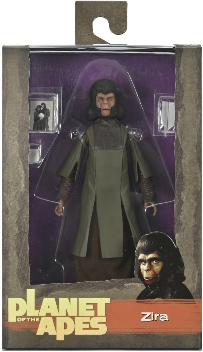 La figura de Zira de El Planeta de los Simios es una pieza imprescindible para los verdaderos fanáticos de esta legendaria saga del cine. Con una altura de 18 centímetros y un diseño completamente articulado, esta figura rinde homenaje a la brillante y valiente científica que desafió las reglas de su mundo para defender la verdad. Cada detalle de Zira ha sido recreado con una fidelidad asombrosa. Su rostro refleja su inteligencia y compasión, mientras que su atuendo, meticulosamente esculpido, reproduce con exactitud los tonos y texturas del vestuario original de la película. El trabajo en el pelaje, el esculpido de las manos y la expresión facial transmiten toda la personalidad y carisma de este personaje icónico. La figura incluye accesorios únicos que hacen honor a sus momentos más memorables: la nota de Taylor, el avión de papel con el que ambos desafiaron las creencias del mundo simio, y su foto de bodas, un detalle encantador que evoca su historia junto a Cornelius. Además, su caja es ideal para exhibición, con un diseño temático inspirado en el universo del Planeta de los Simios. Zira no es solo una figura, es un pedazo de historia cinematográfica que combina emoción, detalle y nostalgia en una sola pieza.