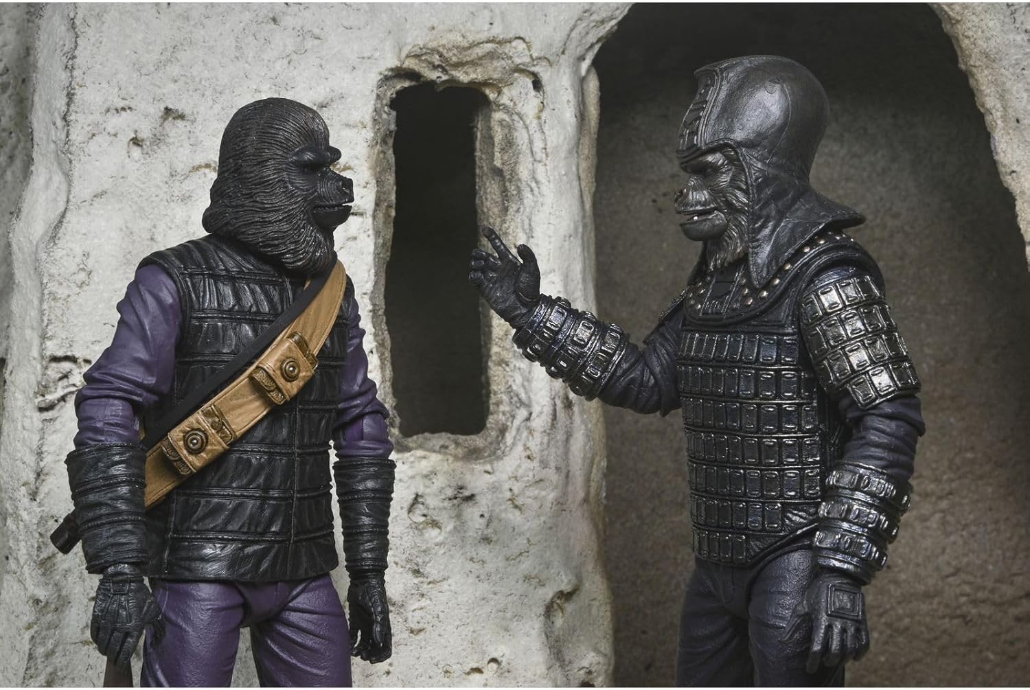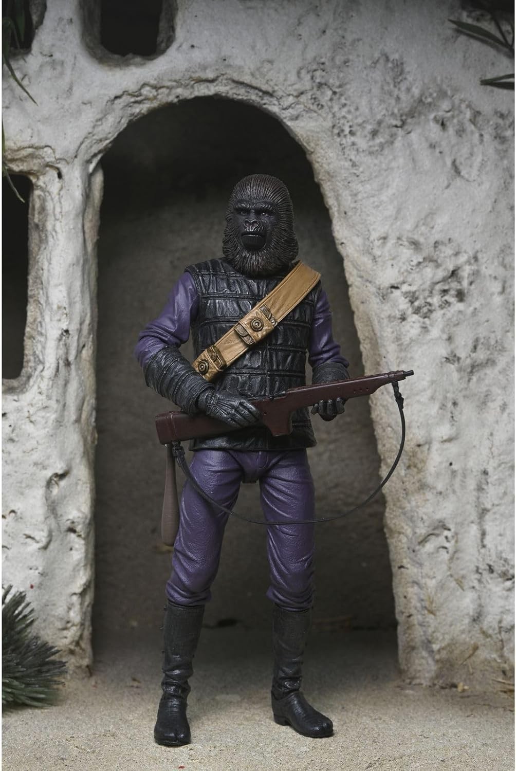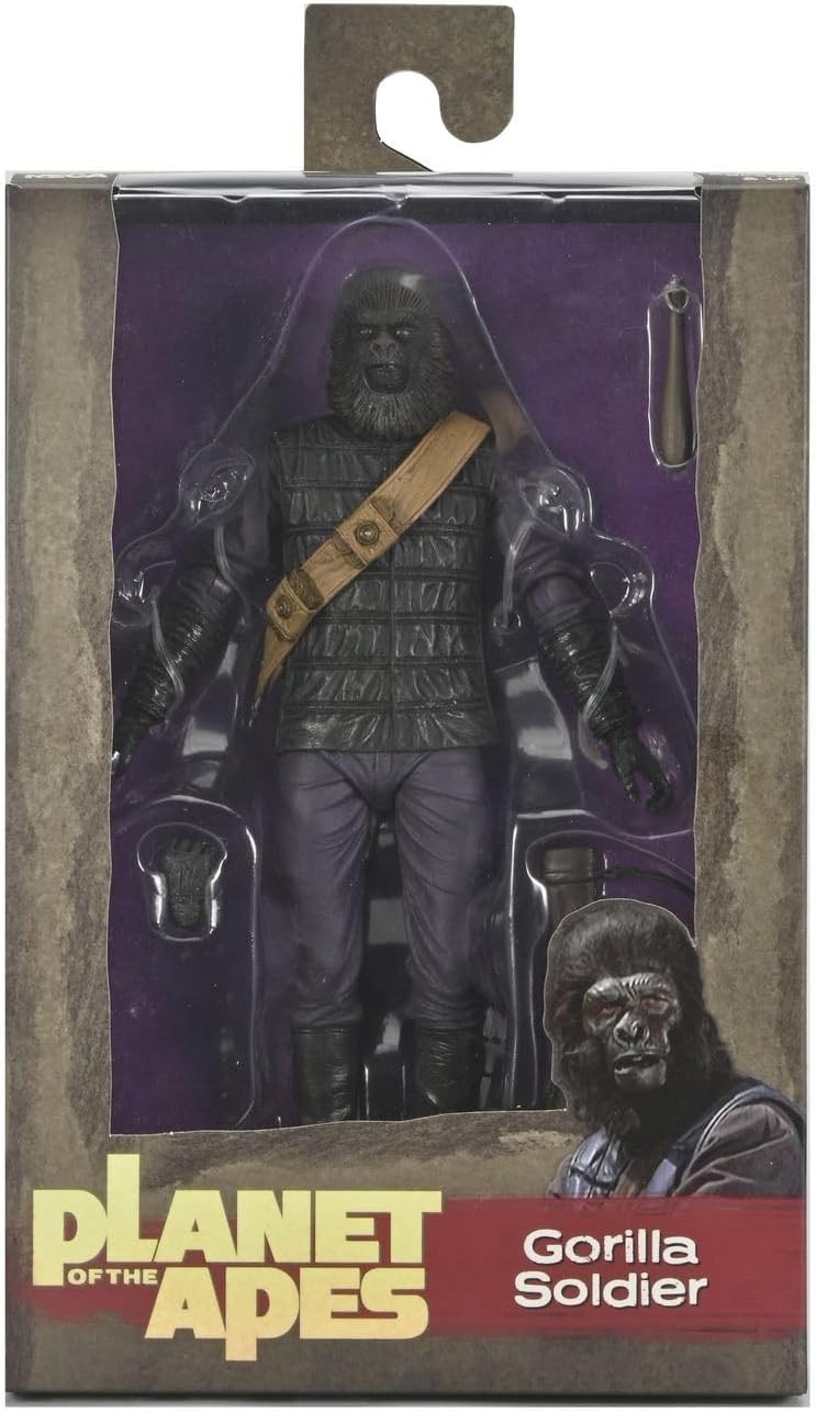 ¡Prepárate para rugir de emoción con la Figura Gorilla Soldier de El Planeta de los Simios! Esta figura articulada de 18 centímetros es una pieza imprescindible para todo coleccionista y amante del cine clásico de ciencia ficción. Inspirada fielmente en la película original, este imponente soldado gorila encarna la fuerza y el carácter indomable del ejército simio que dominó la gran pantalla. Su nivel de detalle es simplemente espectacular: la armadura tiene texturas realistas, tonos metálicos y un acabado envejecido que le da un aire de batalla auténtico. El pelaje, finamente esculpido, refleja sombras y matices que hacen que la figura parezca cobrar vida ante tus ojos. Cada pliegue, cada fibra, cada rasgo está cuidado al máximo para capturar la esencia del guerrero más temido del Planeta de los Simios. Pero eso no es todo: esta figura incluye una mano intercambiable, perfecta para variar sus poses y darle aún más dinamismo, además de una porra y un rifle, ¡armas con las que está listo para patrullar y mantener el orden entre los humanos rebeldes! Imponente, detallada y llena de actitud, la Figura Gorilla Soldier es más que un juguete: es una pieza de colección épica que te transportará directo al corazón de una de las sagas más legendarias del cine. ¡Hazla tuya y deja que el poder simio conquiste tu colección!
