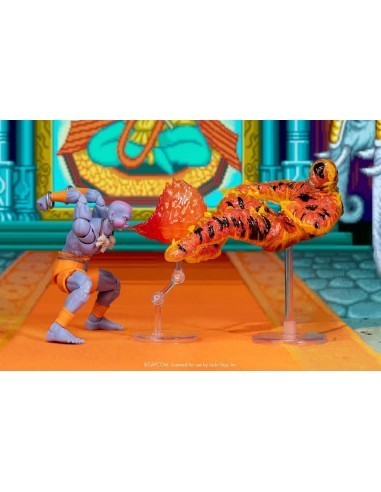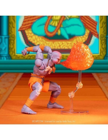 Desde las tierras místicas de la India llega la Figura Dhalsim Deluxe Street Fighter II The Final Challengers Articulada de 16,5 cm, una representación perfecta del maestro del yoga y sus legendarios poderes de fuego. Esta figura captura la serenidad y el poder de uno de los luchadores más singulares del universo Street Fighter, conocido por su dominio del Yoga Flame y su habilidad para estirar el cuerpo más allá de los límites humanos. La edición Deluxe incluye una figura de un enemigo envuelto en un ataque de Dhalsim, recreando sus devastadores movimientos con fuego espiritual. Además, cuenta con cabezas intercambiables que permiten mostrar distintas expresiones de concentración o combate, dos espectaculares efectos de fuego translúcido que evocan sus ataques más icónicos, y un conjunto de manos y brazos intercambiables para personalizar sus poses. Para completar la presentación, se incluyen peanas transparentes de exposición que permiten exhibir las figuras en posiciones dinámicas, simulando los ataques aéreos y las posturas flotantes de este guerrero místico. Con un nivel de detalle excepcional y múltiples puntos de articulación, esta figura de Dhalsim es una pieza esencial para cualquier coleccionista de Street Fighter y un tributo al equilibrio entre poder, espiritualidad y combate que define al personaje desde sus primeras apariciones en el clásico arcade.