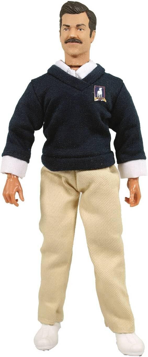 Ted Lasso llega a tu colección en formato figura articulada de 20 cm, creada por Mego bajo la dirección y legado de Marty Abrams, pionero en la historia del coleccionismo de figuras de acción. Esta pieza recupera la esencia del estilo clásico de Mego, con ese toque retro tan reconocible y apreciado por coleccionistas de todas las generaciones, pero adaptada al personaje que conquistó a medio mundo con su optimismo, humanidad y liderazgo. La figura presenta ropa de tela al estilo tradicional de la marca, permitiendo una presencia más auténtica y cercana al personaje televisivo. Sus puntos de articulación permiten posar a Ted en diferentes posturas, desde su actitud relajada y cercana hasta poses inspiradas en sus charlas motivacionales antes de un partido. El esculpido del rostro y los detalles del uniforme reflejan fielmente su personalidad cálida, decidida y siempre dispuesta a creer en las personas. Es una pieza perfecta tanto para fans de la serie como para coleccionistas que valoran la historia del juguete y la estética Mego. Ideal para exponer junto a otras figuras clásicas, en una estantería temática o como pieza protagonista en una colección moderna centrada en cultura televisiva. Esta figura transmite carácter, presencia y un mensaje claro: cree siempre un poco más.