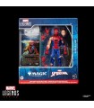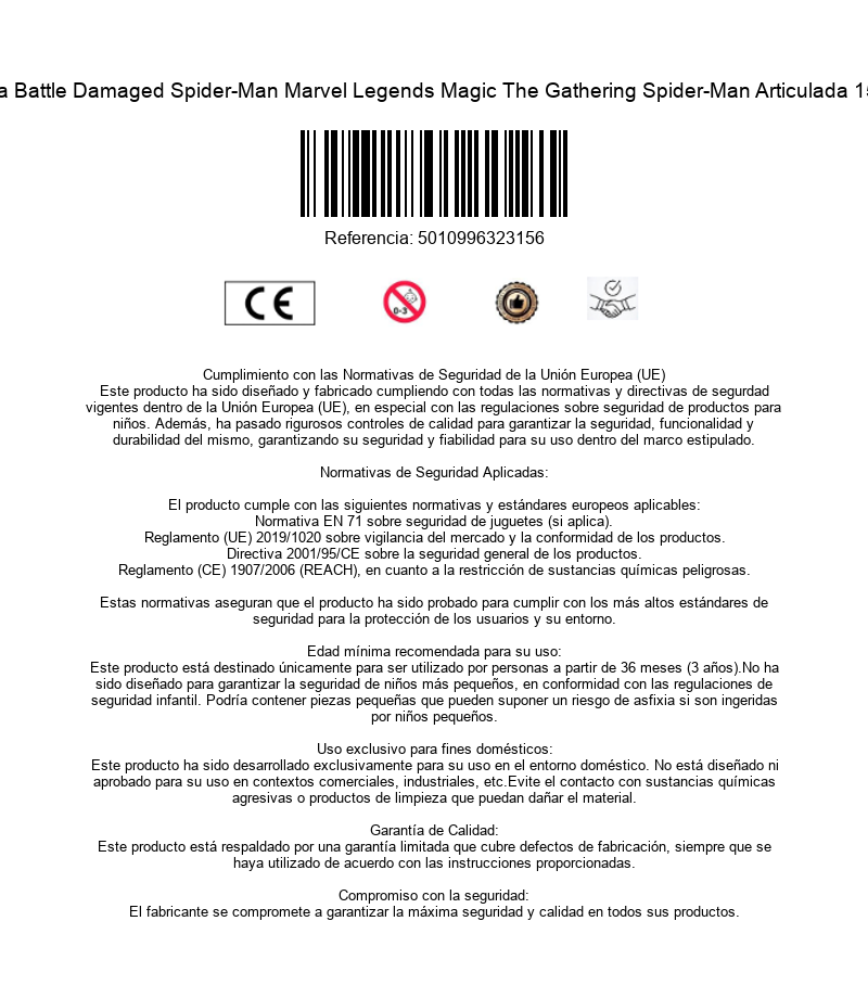 La figura Battle Damaged Spider-Man de Marvel Legends Magic The Gathering Spider-Man captura al trepamuros en uno de sus momentos más extremos, cuando el traje está roto, el cansancio es visible y la batalla aún no ha terminado. Con 15 cm de altura, esta versión muestra a Spider-Man golpeado pero indomable, reflejando que incluso al límite siempre se levanta. Su diseño articulado permite recrear poses dinámicas y escenas de combate cargadas de dramatismo, perfectas para representar enfrentamientos decisivos. El esculpido del traje dañado y los detalles de desgaste aportan una fuerte carga narrativa, mostrando a un héroe que ha pagado el precio de proteger a los demás. La figura incluye dos telarañas para escenas de acción, cuatro manos intercambiables para variar gestos y posturas, una cabeza adicional de Peter Parker que añade un plus de personalidad y una carta de Magic The Gathering exclusiva del personaje, reforzando el cruce entre ambos universos. Una pieza imprescindible para coleccionistas de Marvel Legends y fans de Spider-Man que buscan figuras con historia, carácter y un enfoque épico del héroe cuando todo parece perdido… y aún así sigue colgado de la ciudad.