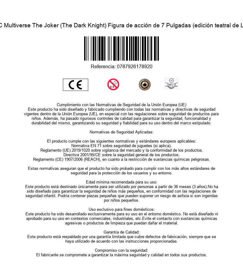 Introduce el caos en tu colección con la Figura The Joker El Caballero Oscuro articulada de 18 cm, una pieza imprescindible para fans del villano más impredecible de DC. Inspirada en su inolvidable aparición en The Dark Knight, esta figura captura toda la esencia inquietante, caótica y magnética del personaje. Con múltiples puntos de articulación, permite recrear poses dinámicas y escenas icónicas, desde sus momentos más calculadores hasta su lado más desatado. El nivel de detalle en el rostro, el vestuario y la expresión transmite perfectamente esa mezcla de locura y carisma que lo define. Incluye varios accesorios que elevan la experiencia: diferentes armas, entre ellas el bazooka que utilizaba en la famosa persecución del túnel, además de cuatro manos adicionales que permiten personalizar gestos y poses para representar distintas escenas. Con 18 cm de altura, es ideal tanto para exposición como para completar una colección dedicada al universo de DC o a los grandes villanos del cine. Una figura perfecta para quienes saben que, cuando aparece el Joker… todo puede pasar.