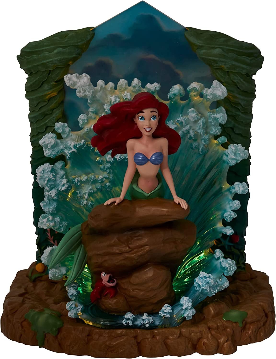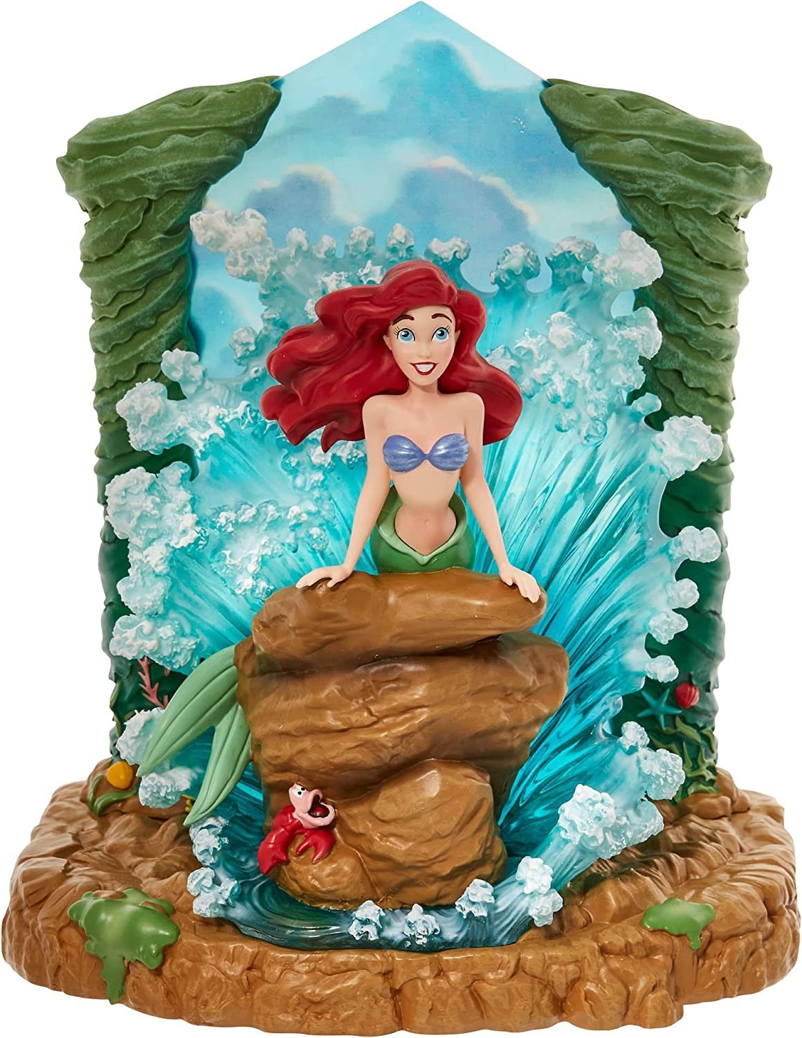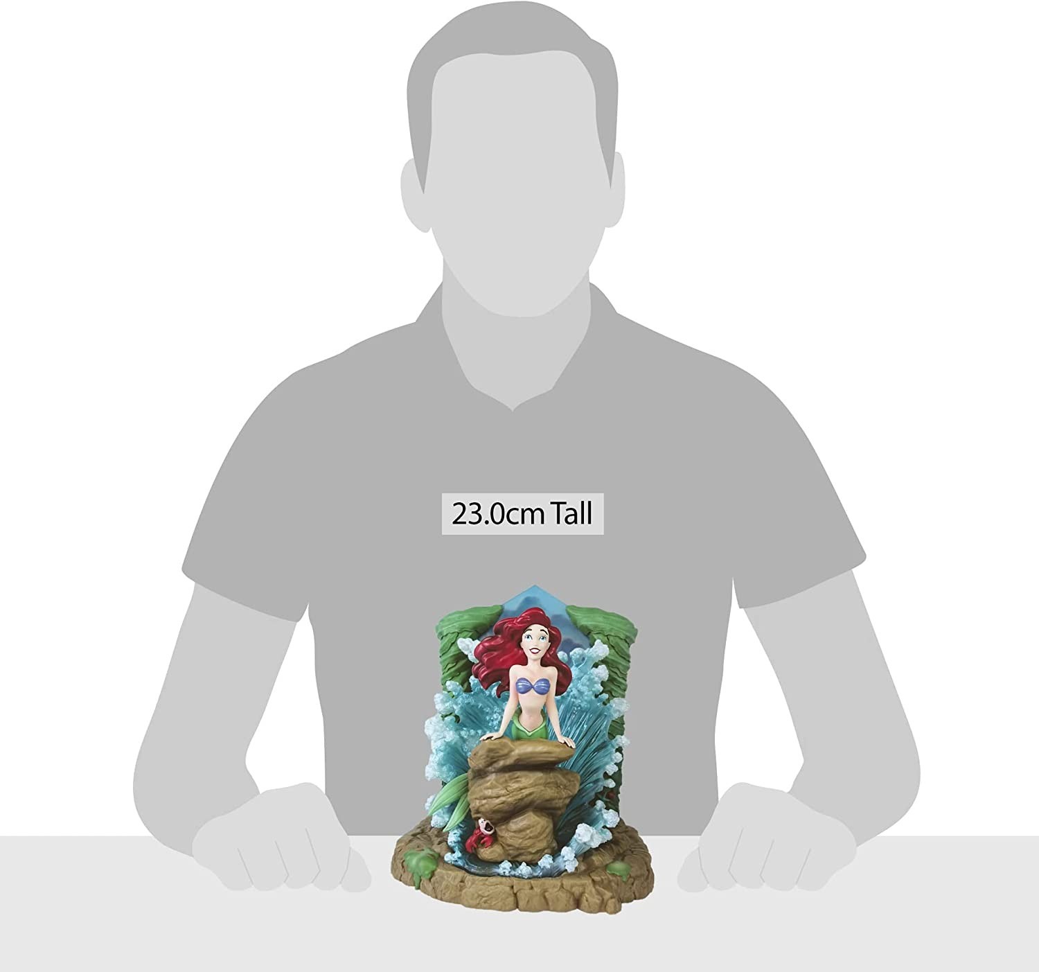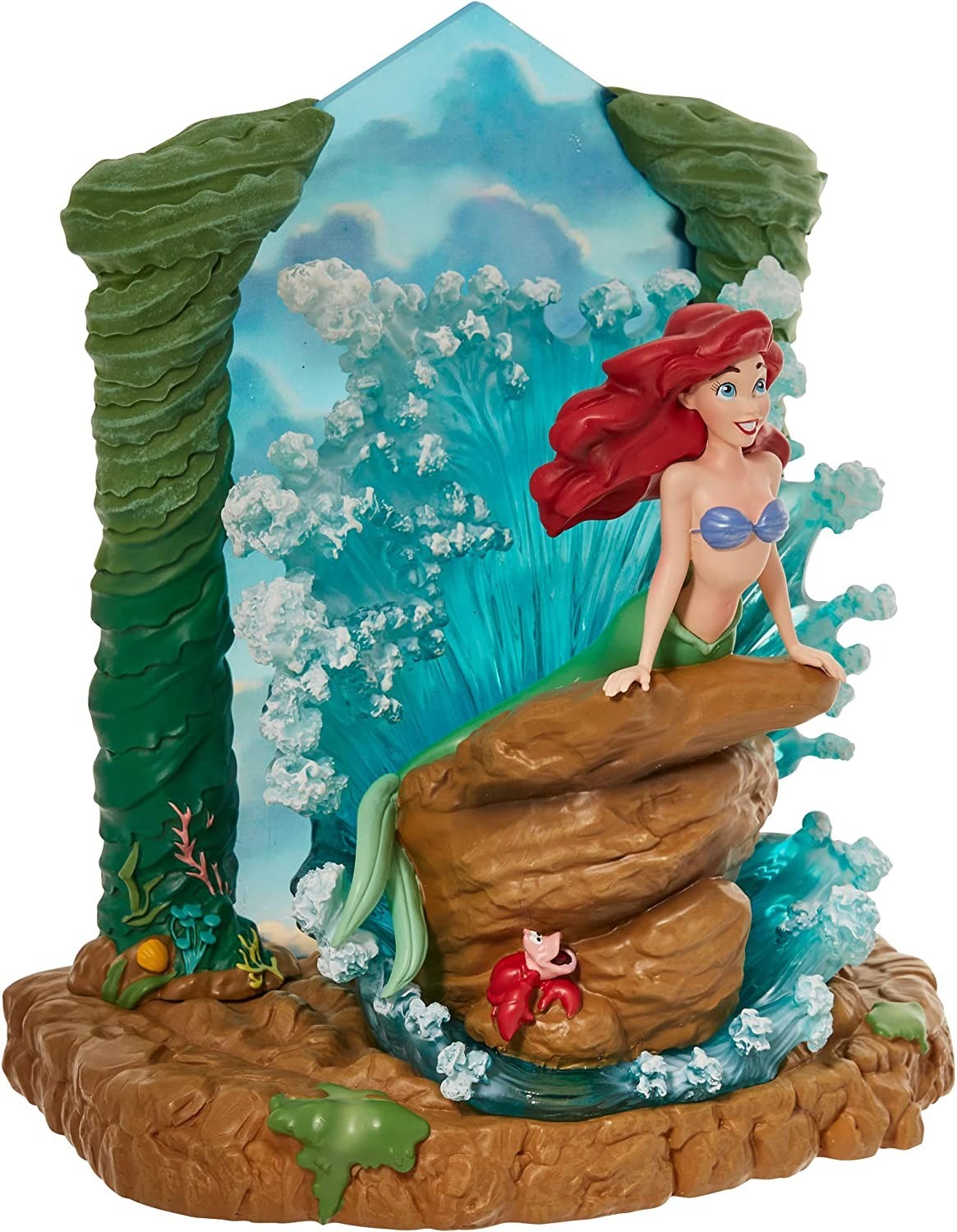 La prestigiosa marca Enesco nos ha acostumbrado a entregar unas figuras excepcionales llenas de detalles e imbuidas del espíritu de los personajes que homenajean. En esta ocasión han querido rendir tributo a la queridísima Ariel, la sirena protagonista de la película "La Sirenita". Esta espectacular estatua diorama muestra a Ariel apoyada en una roca con una gran ola rompiendo detrás de ella y con el cangrejo Sebastián observándola desde abajo. Está hecha de resina de gran calidad que ha sido pintada a mano cuidadosamente para recrear hasta el más mínimo detalle la escena de la película. Llévate esta delicada e impresionante escultura de 23 cms de la Showcase Collection y dale un toque marino a tu hogar.