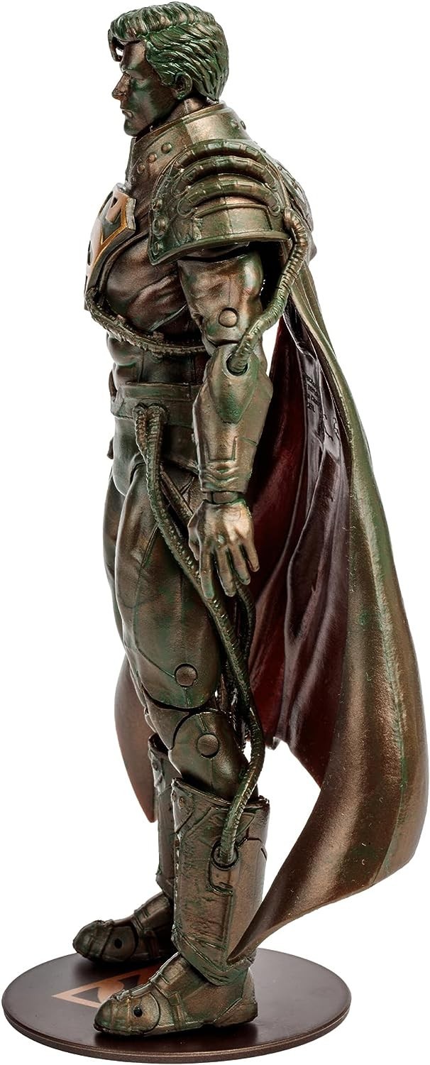 El lore de Superman es uno de los más ricos dentro del universo DC Cómics. McFarlane toys, la legendaria marca de figuras creada por el monstruo (figuradamente) Todd McFarlane, nos trae la figura articulada de Superboy-Prime. Y no una cualquiera, está basada en Infinite Crisis y es una Patina Edition, por lo que la figura tiene un acabado imitando el bronce que la hace ES-PEC-TA-CU-LAR. Incluye accesorios como una peana de exposición, una tarjeta coleccionable, un soporte para la tarjeta con el logo de DC y un certificado de autenticidad. Esta edición limitada a 4.010 unidades es una exclusiva 2023 de McFarlane que viene en una caja que también merece una estantería solo para ella. ¡Echa a volar con Superboy!