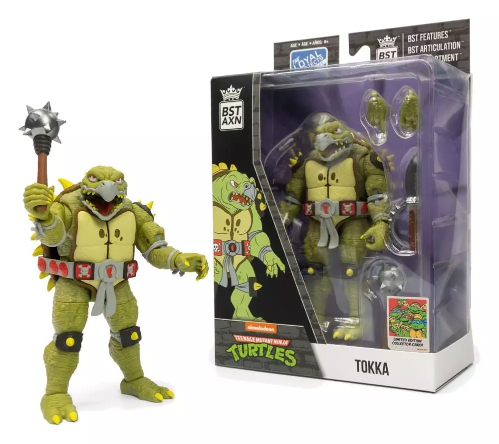Cuidadito con su mala uva… ¿Amigo o enemigo? Tokka es una imponente tortuga que procede del planeta Magdomar. Pero no es una tortuga extraterrestre sin más. Magdomar, además, es uno de los seis monstruos cósmicos y guardián de una de las piezas del Corazón de las Tinieblas. The Loyal Subjects y BST AXN nos traen la figura articulada de Tokka. Los fans de la saga de las Tortugas Ninja (TMNT) podrán disfrutar ahora e incorporar a este icónico personaje a su colección de figuras. Mide unos 13 cms y está hecha de PVC de gran calidad. Incluye accesorios como dos manos adicionales, mazo con pinchos y arma corta. Es de licencia oficial Nickelodeon, la cadena que emitía las series de animación de las tortugas.