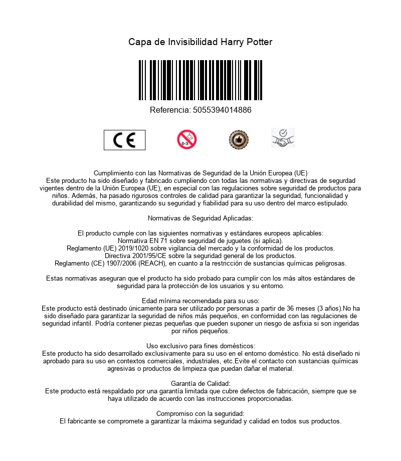 Wow Stuff te trae uno de los productos más impresionantes de Harry Potter, uno de esos que te acercan un poco de la magia del universo del mago a tu día a día para que te diviertas y te sorprendas. Se trata de… ¡la capa de invisibilidad! Dentro de una elegante caja negra viene una capa de 200 x 116 cms de tela decorada con motivos mágicos que recrean los de la auténtica capa de las películas. Incluye un código de activación que podrás usar en la aplicación oficial y grabar vídeos en los que te vuelves invisible. Para que funcione es necesario un dispositivo móvil o tablet con cámara incorporada y descargar la app. Hazte con tu capa de licencia oficial y pásatelo en grande poniéndote en la piel de Harry y usando uno de los objetos más icónicos de la saga cinematográfica.