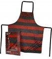 SD Toys se ha adentrado en el mundo de las pesadillas de Freddy Krueger y desde allí te trae este exclusivo delantal de licencia oficial. Ahora podrás cocinar llevando un delantal decorado con las icónicas rayas rojas y negras desgastadas del jersey de Freddy, el sobrenatural asesino de la saga “Pesadilla en Elm Street”. Está hecho de poliéster.
