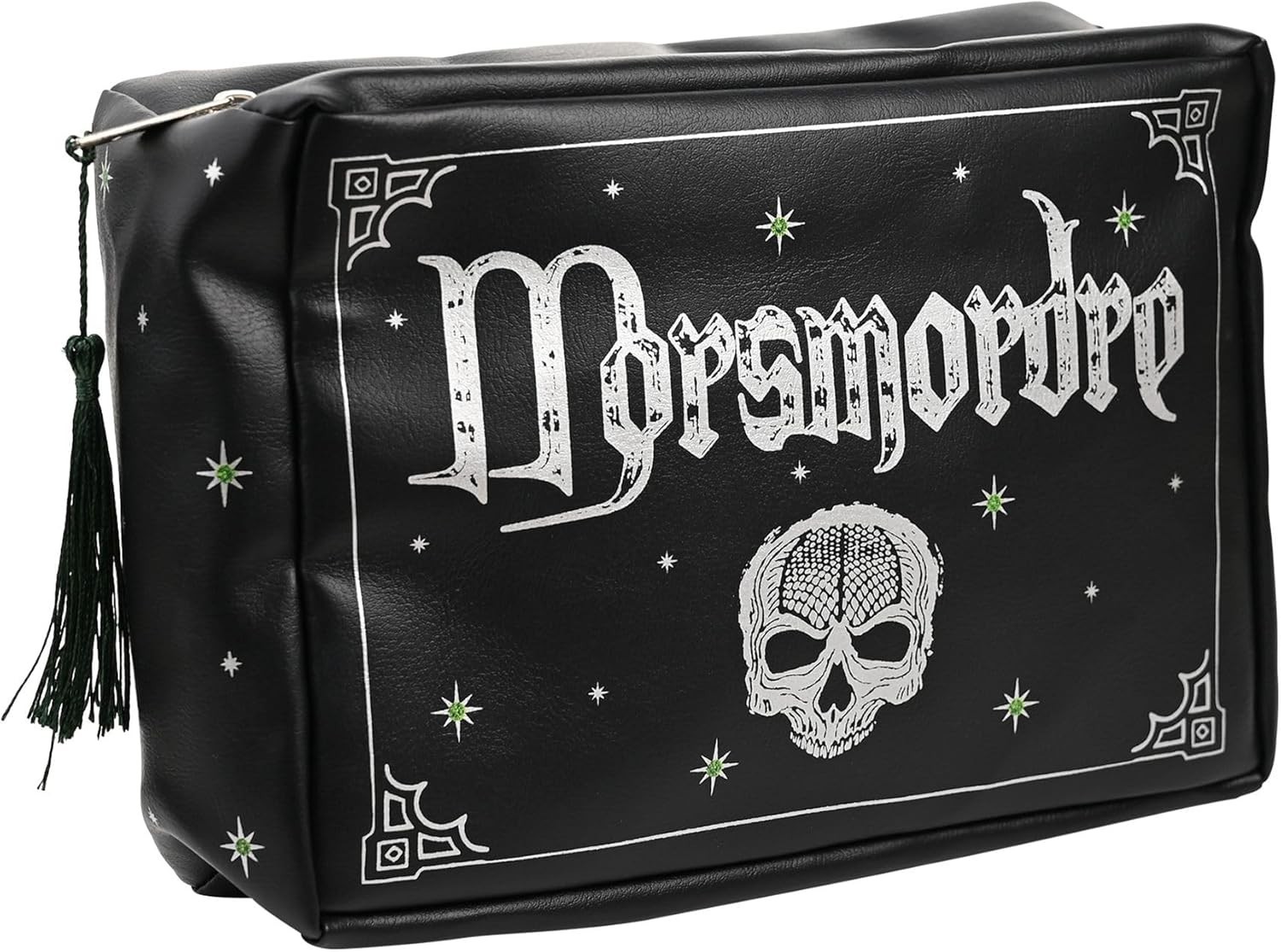 Un neceser Morsmordre de Harry Potter Dark Arts. Adéntrate en el reino místico de la hechicería con este llamativo neceser negro, diseñado para los entusiastas más devotos de Harry Potter. Confeccionado con textiles de alta calidad y adornado con adornos auténticos de Harry Potter. Este neceser es tan duradero como encantador. Es increíblemente funcional, pero también ofrece a los fanáticos una forma mágica de organizar y llevar sus elementos esenciales de cuidado personal.
