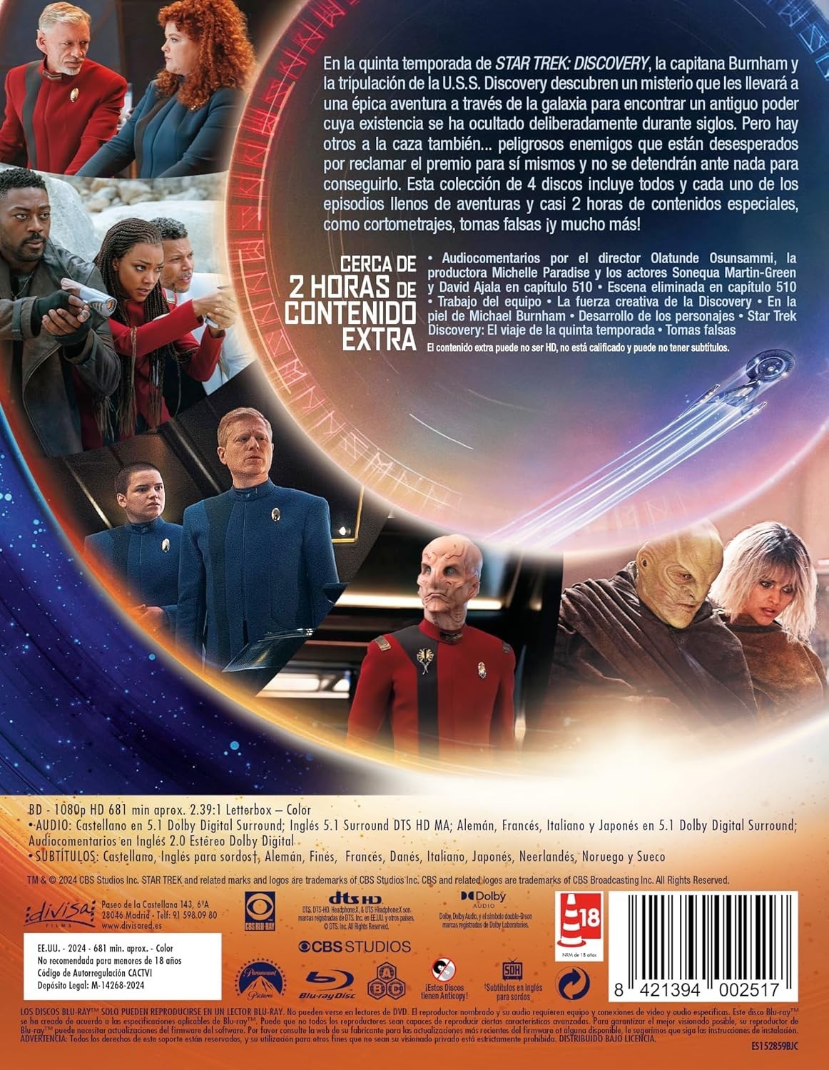 ![Star Trek Discovery - Temporada 5 (La Temporada Final) (Steelbook) (4 discos) [Blu-ray] (2017)](https://frikiverso.es/661465-large_default/star-trek-discovery-temporada-5-la-temporada-final-steelbook-4-discos-blu-ray-2017.jpg)