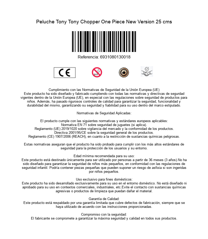 El peluche Tony Tony Chopper One Piece New Version de 25 cms es un artículo imprescindible para los fanáticos de la popular serie de anime y manga. Este peluche captura la esencia del entrañable doctor de los Piratas del Sombrero de Paja, mostrando sus características más reconocibles, como su gorro rosa con la cruz blanca y su expresión tierna y alegre. Con un tamaño de 25 centímetros, resulta ideal para exhibir en estanterías, escritorios o incluso para acompañar en momentos de descanso y juegos. Ofrece una textura agradable al tacto, lo que lo hace cómodo de abrazar y manipular. Su diseño detallado refleja fielmente la apariencia de Chopper en la serie, incluyendo sus pequeñas patas, su nariz característica y su postura típica. Es una opción perfecta tanto para coleccionistas como para niños que desean tener a su personaje favorito cerca. Este peluche combina diversión, ternura y fidelidad al personaje, convirtiéndose en un regalo ideal para quienes aman One Piece y buscan un compañero de aventuras nocturnas que capture la magia y el encanto de esta historia.