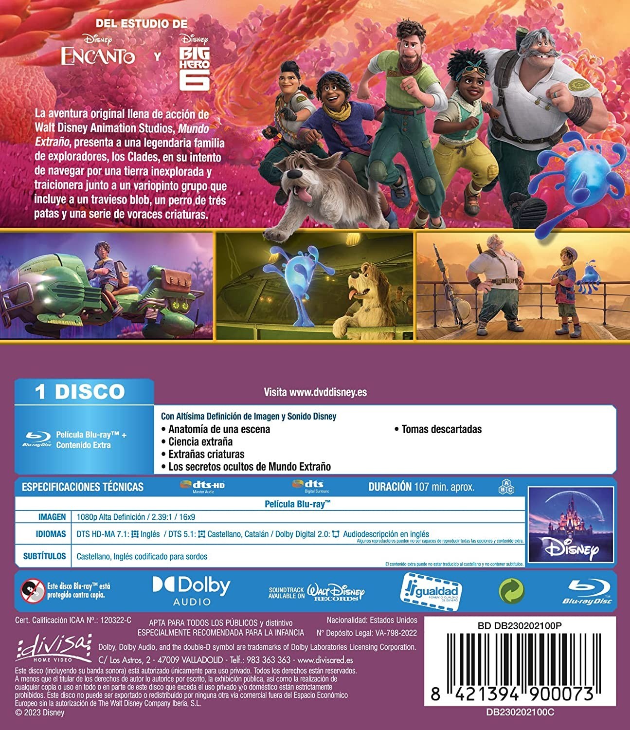 La aventura original llena de acción de Walt Disney Animation Studios, MUNDO EXTRAÑO, presenta a la legendaria familia de exploradores, Los Clades, en su intento de navegar por una tierra inexplorada y traicionera junto a un variopinto grupo que incluye a un travieso blob, un perro de tres patas y una serie de voraces criaturas.