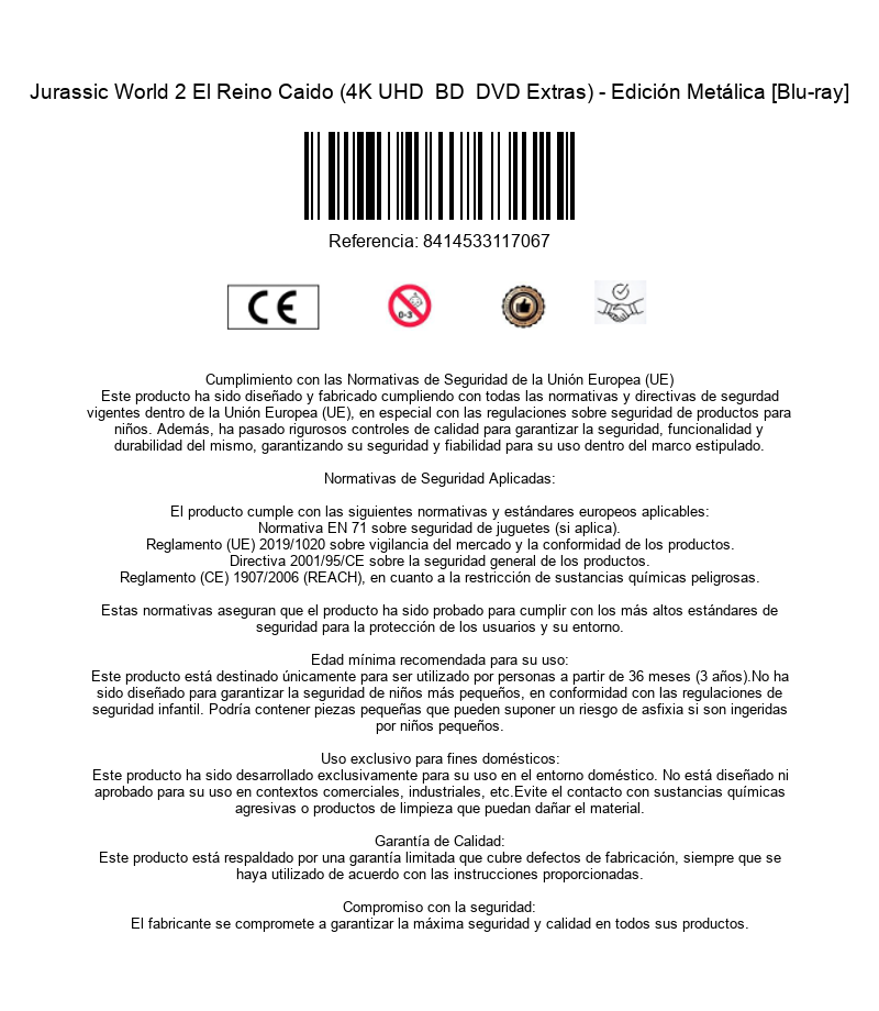![Jurassic World 2 El Reino Caido (4K UHD BD DVD Extras) - Edición Metálica [Blu-ray]](https://frikiverso.es/495508-large_default/jurassic-world-2-el-reino-caido-4k-uhd-bd-dvd-extras-edicion-metalica-blu-ray-.jpg)