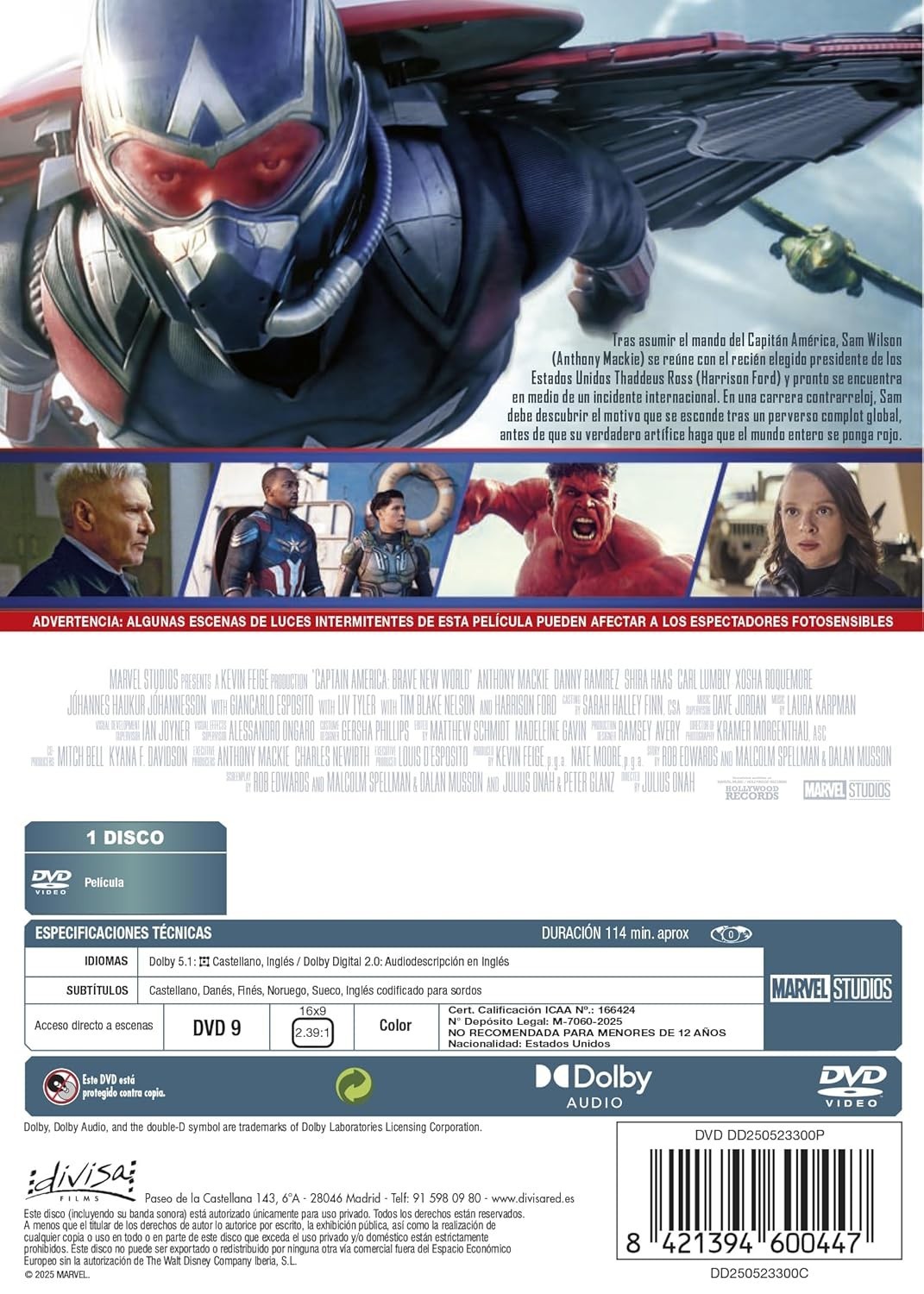 Capitán América: Brave New World [DVD] (2025) Captain America: Brave New World
