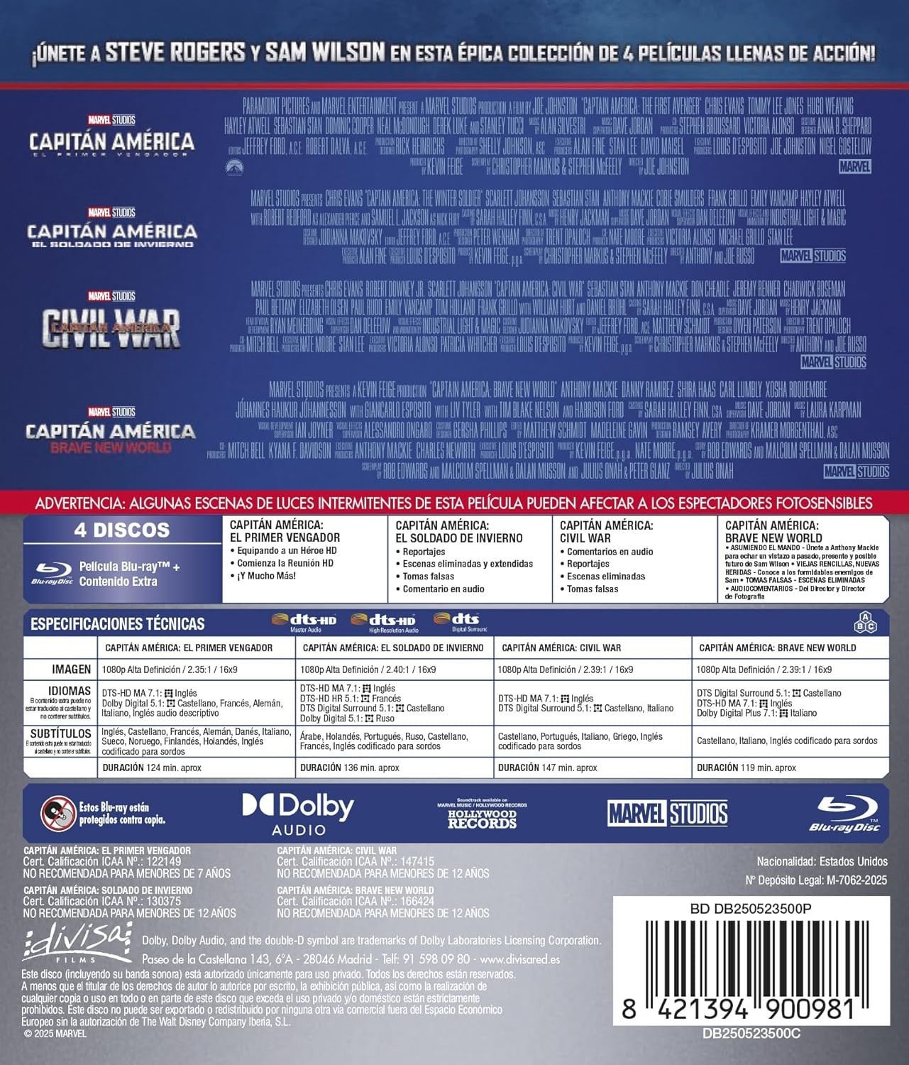 ![Capitán América: Colección 4 Películas (4 discos, Edición con funda) [Blu-ray] (Varios años) Captain America](https://frikiverso.es/734100-large_default/capitan-america-1-4-blu-ray-pack-4-peliculas-el-primer-vengador-the-first-avenger-el-soldado-de-invierno-the-winter-sold.jpg)