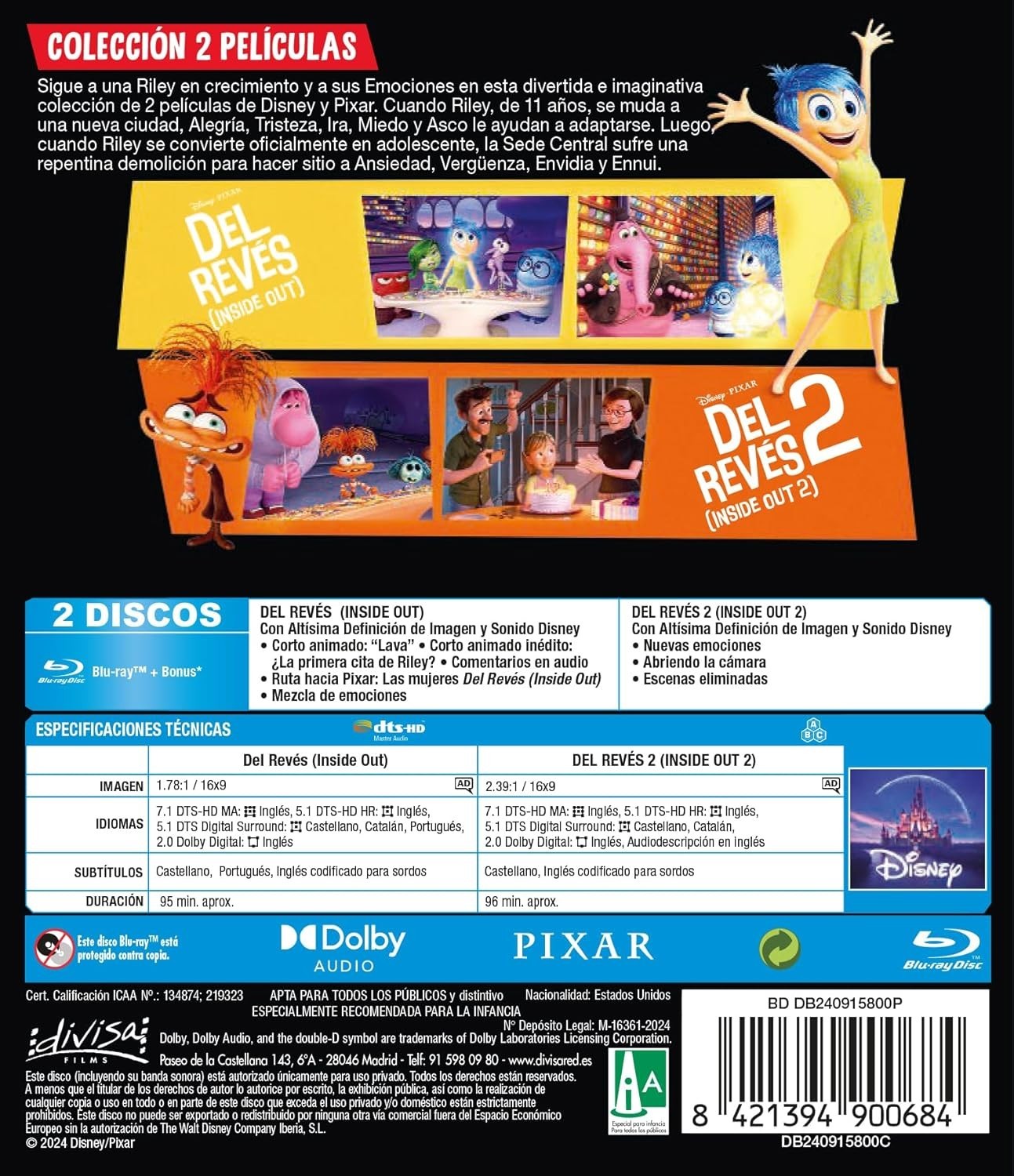 Del Revés 1 + Del Revés 2 [Blu-ray] (2015, 2024) Inside Out 1 + Inside Out 2
