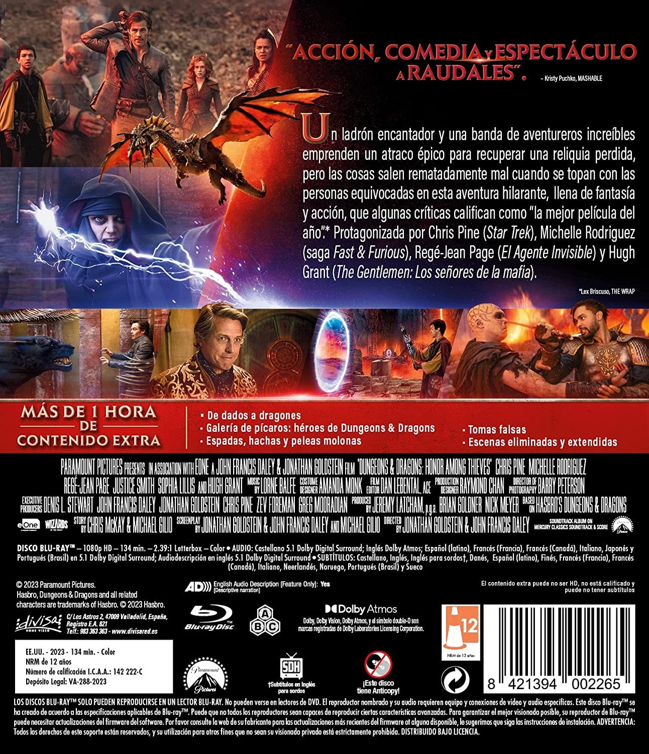 Extras: De dados a dragones • Galería de pícaros: héroes de Dungeons & Dragons • Espadas, hachas y peleas molonas • Tomas falsas • Escenas eliminadas y extendidas.