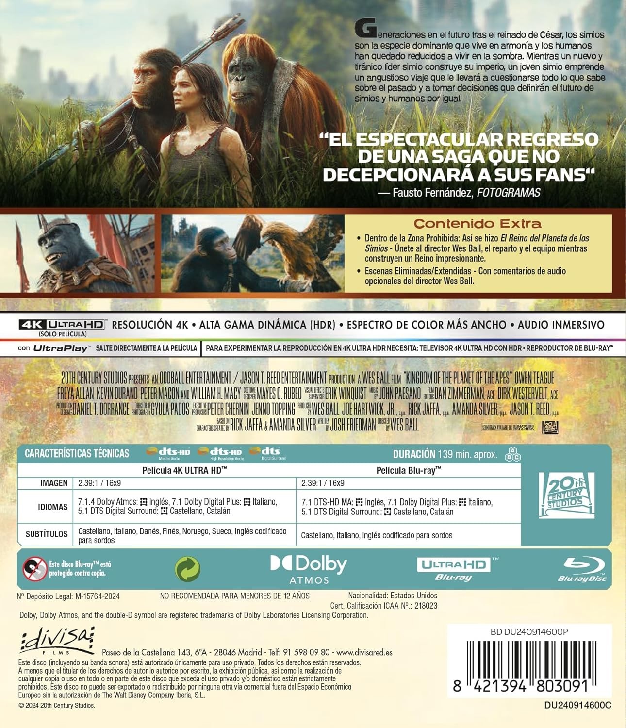 ![El Reino Del Planeta De Los Simios [4K UHD, Blu-ray] (2024) Kingdom of the Planet of the Apes](https://frikiverso.es/662080-large_default/el-reino-del-planeta-de-los-simios-4k-uhdblu-ray-2024-kingdom-of-the-planet-of-the-apes.jpg)