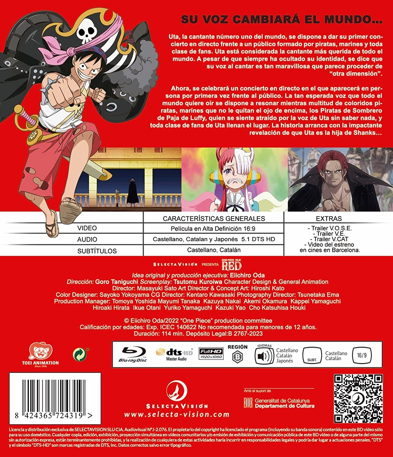 Su voz cambiará el mundo… Uta, la cantante número uno del mundo, se dispone a dar su primer concierto en directo frente a un público formado por piratas, marines y toda clase de fans. Uta está considerada la cantante más querida de todo el mundo. A pesar de que siempre ha ocultado su identidad, se dice que su voz al cantar es tan maravillosa que parece proceder de “otra dimensión”. Ahora, se celebrará un concierto en directo en el que aparecerá en persona por primera vez frente al público. La tan esperada voz que todo el mundo quiere oír se dispone a resonar mientras multitud de coloridos piratas, marines que no le quitan el ojo de encima, los Piratas de Sombreros de Paja de Luffy, quien se siente atraído por la voz de Uta sin saber nada, y toda clase de fans de Uta llenan el lugar. La historia arranca con la impactante revelación de que Uta es la hija de Shanks…