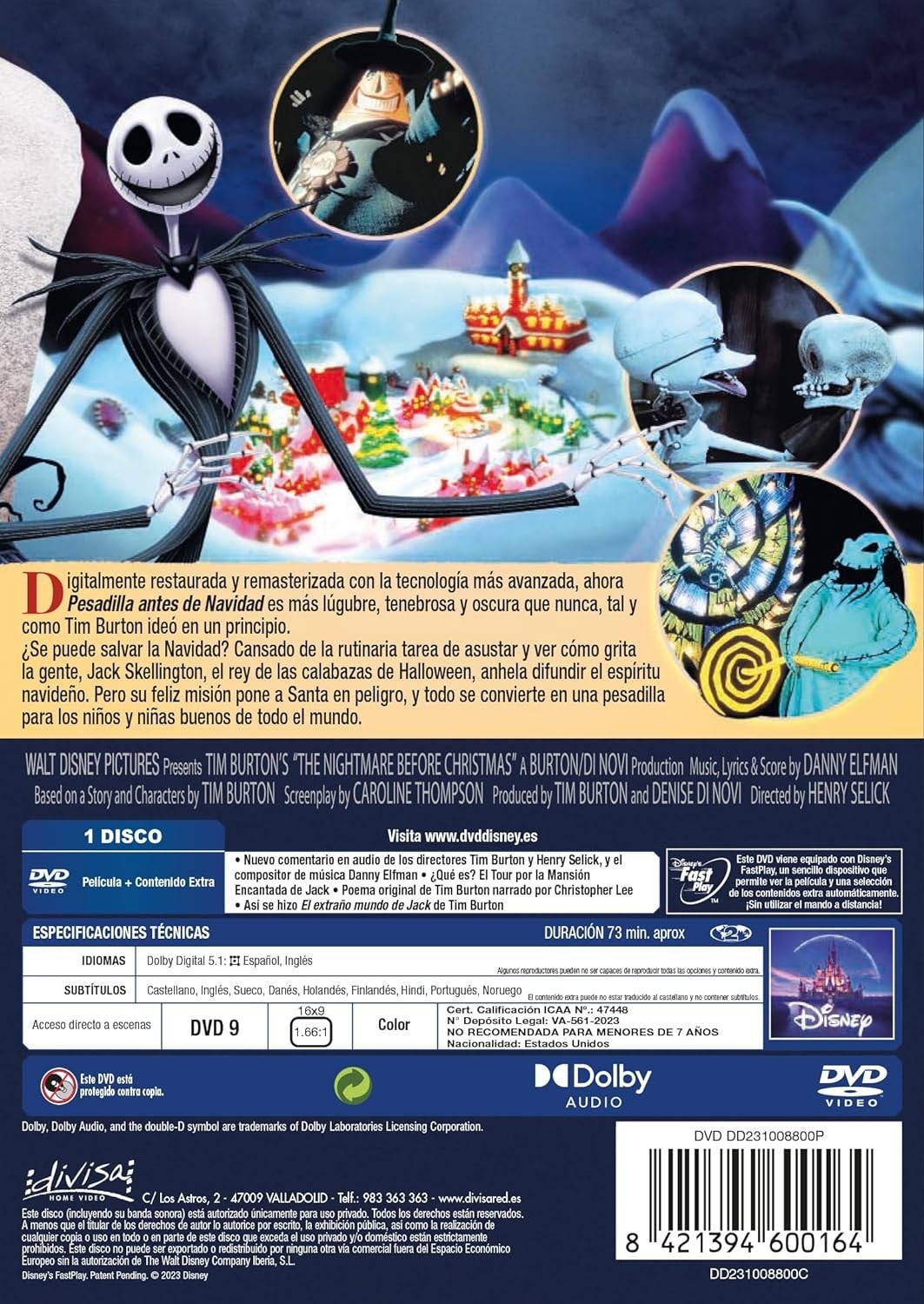 Digitalmente restaurada y remasterizada con la tecnología más avanzada, ahora Pesadilla antes de Navidad es más lúgubre, tenebrosa y oscura que nunca, tal y como Tim Burton ideó en un principio.