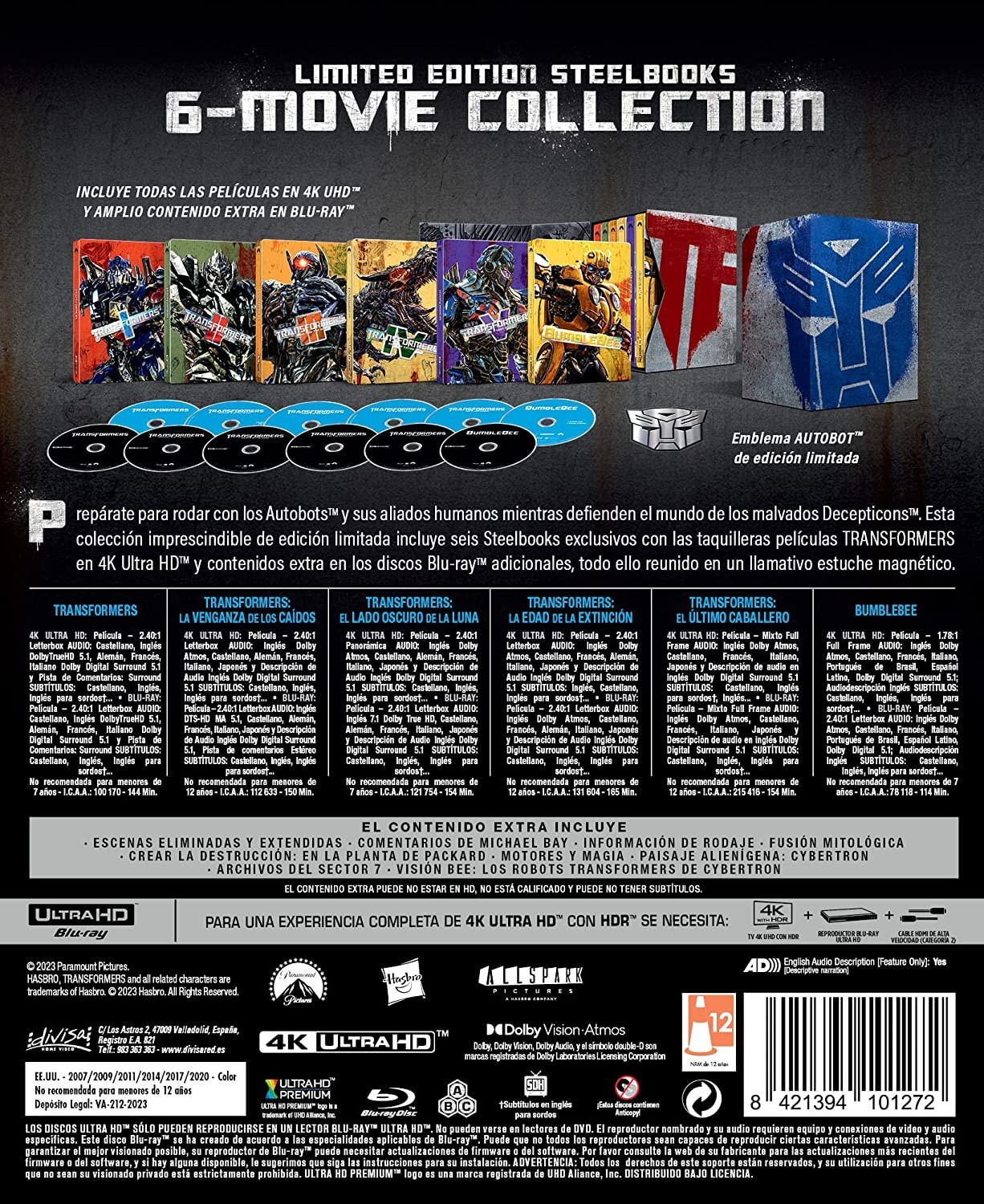 Transformers 6-Movie Collection (Steelbook) (4K UHD + Blu-ray): Transformers, La Venganza de los Caidos, El Lado Oscuro de la Lu